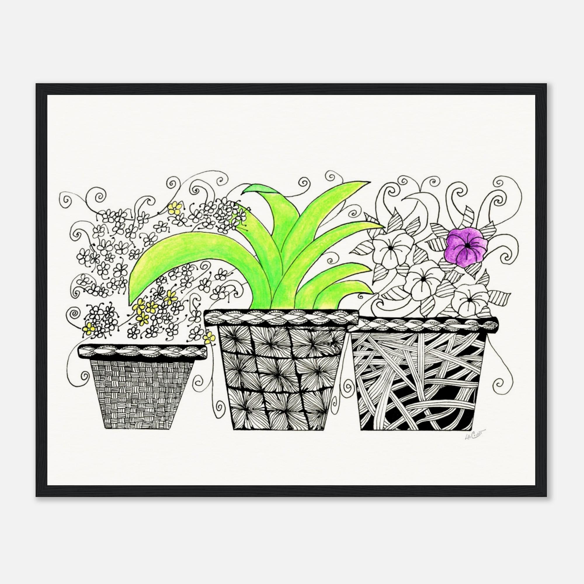 LaCount Anderson Flower Garden Framed Poster: Zentangle Botanical Art Print