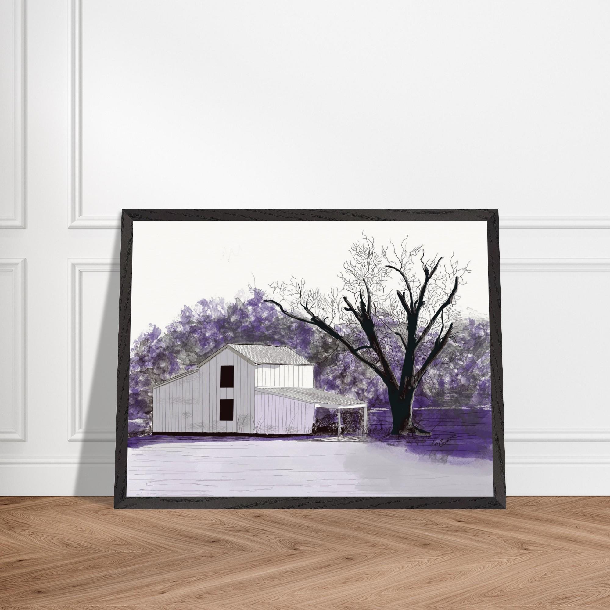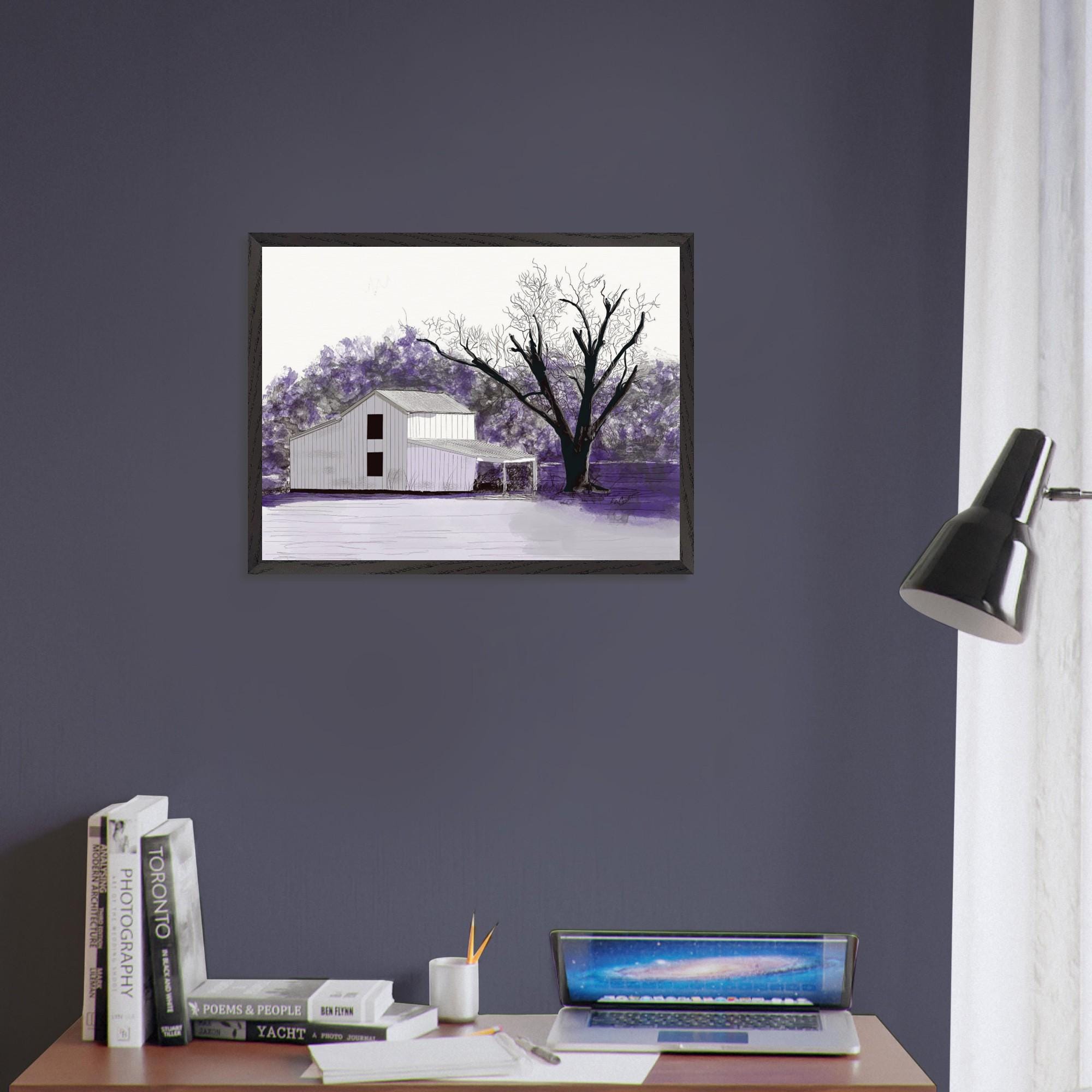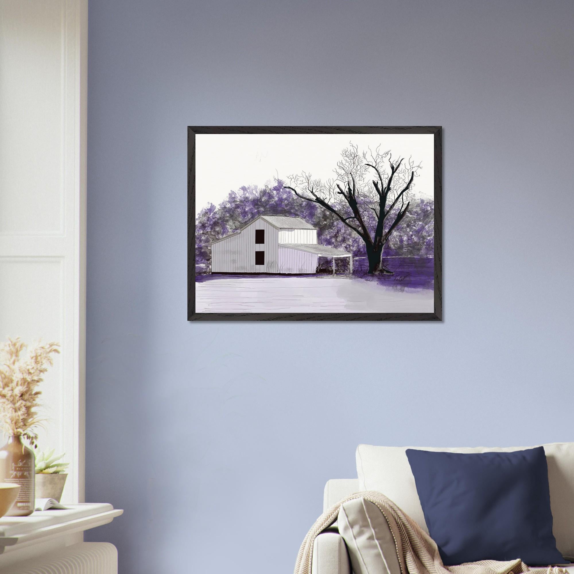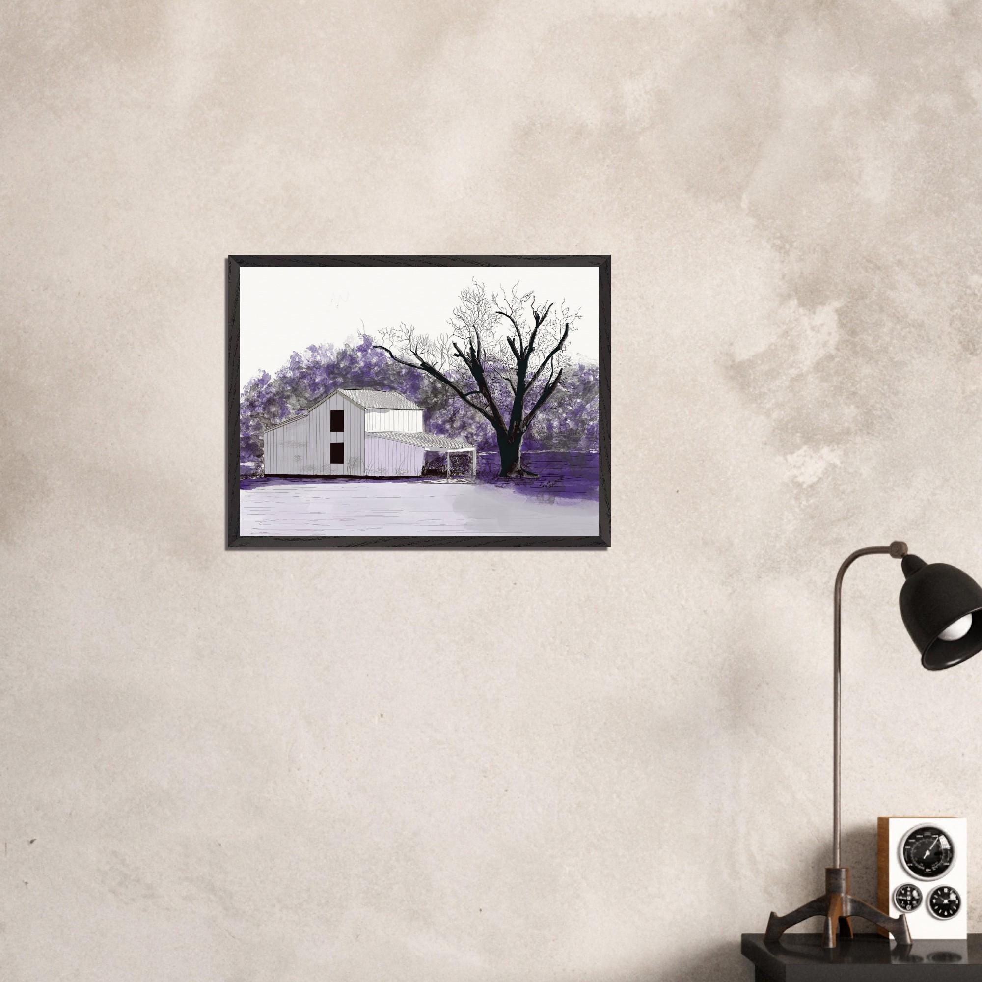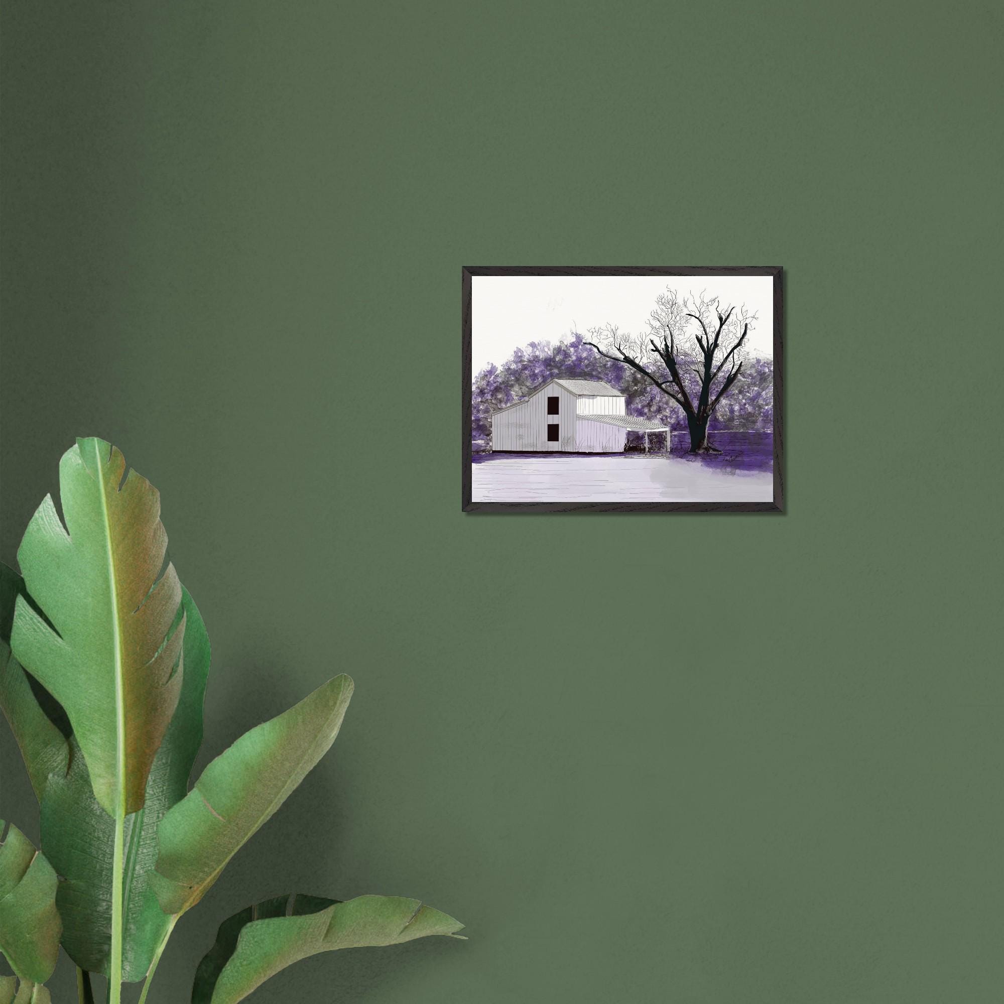 This original piece of farmer art is a perfect representation of country life, capturing the beauty of a rustic winter barn in Eastern North Carolina. The artist has used a delicate blend of colors to capture this serene scene, creating a masterpiece of rural living. The use of lavender hues conveys an alluring atmosphere that will bring beauty and peace to any room.