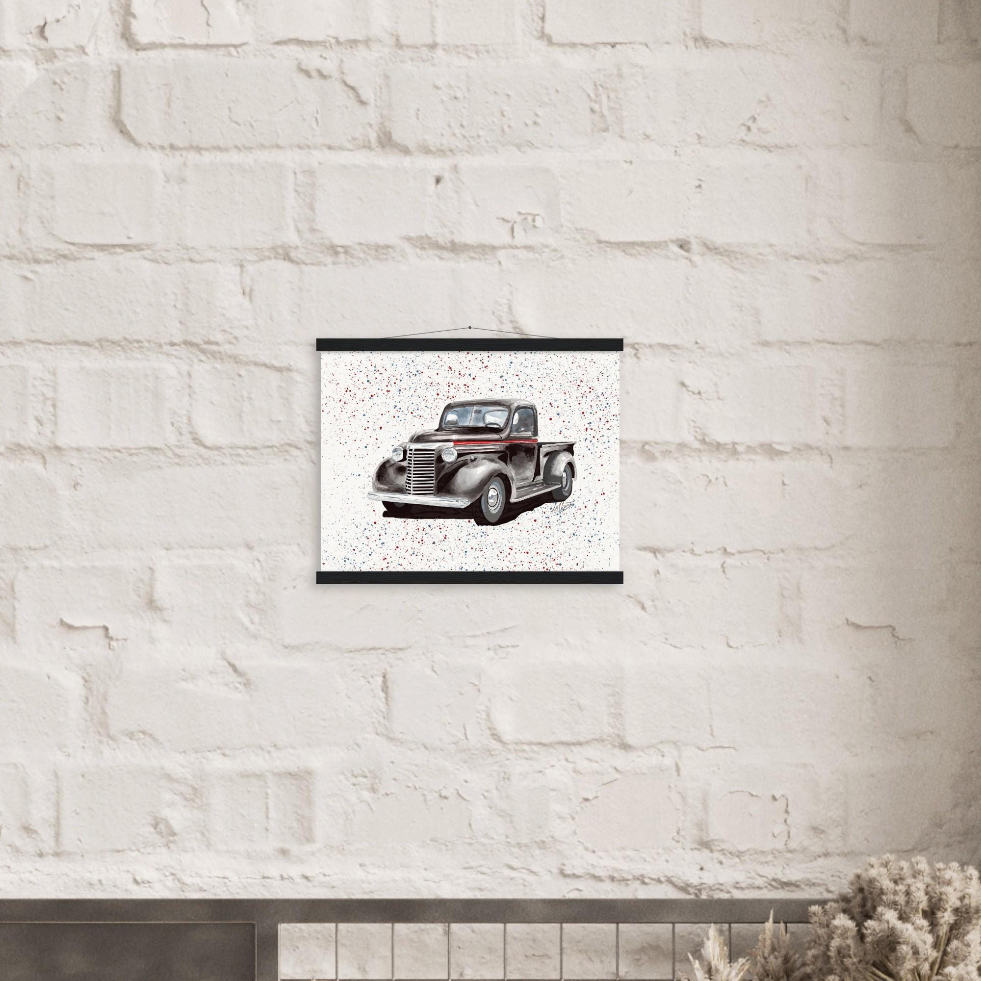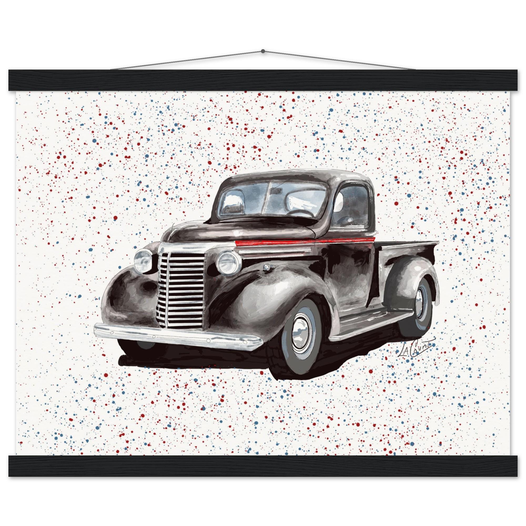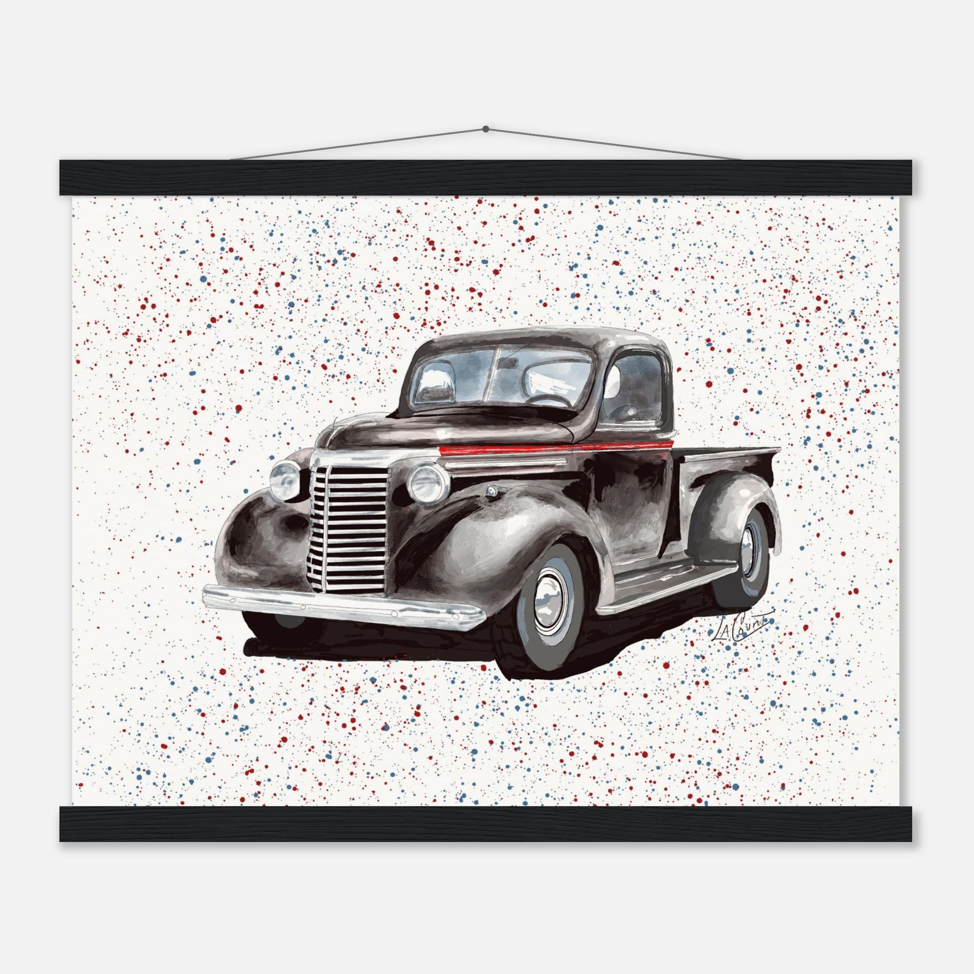 Retro Chevy Truck Print: 1940s Classic Car Poster on Wooden Hanger