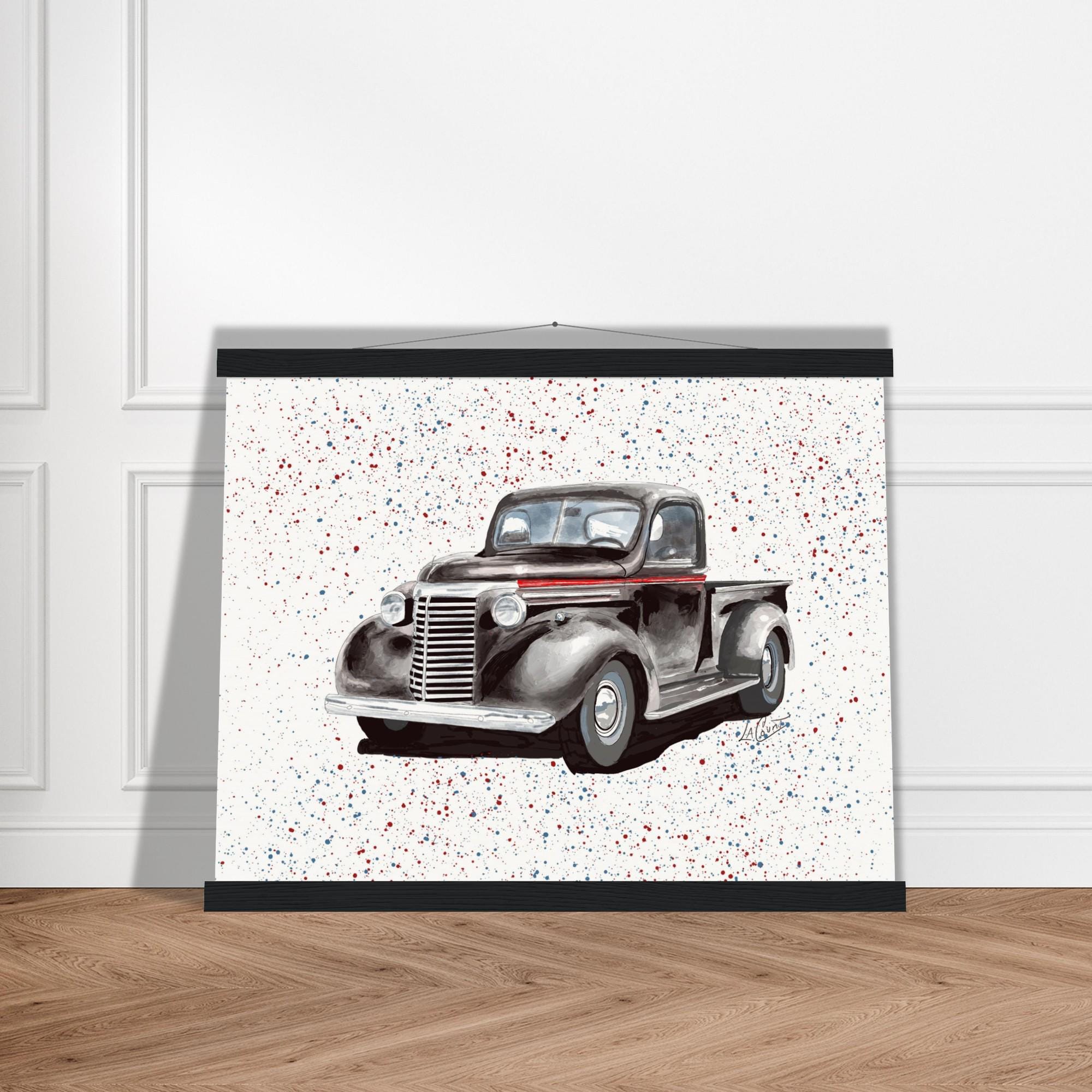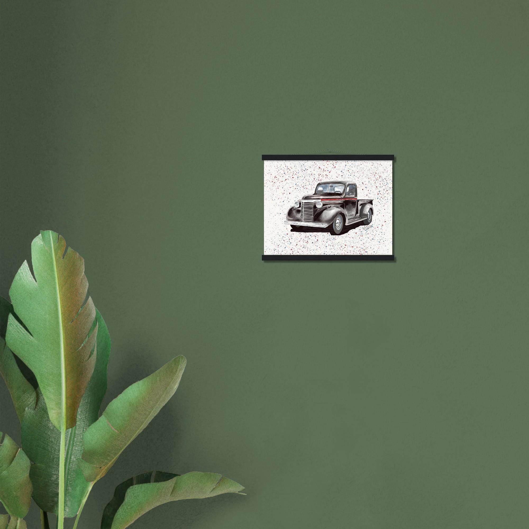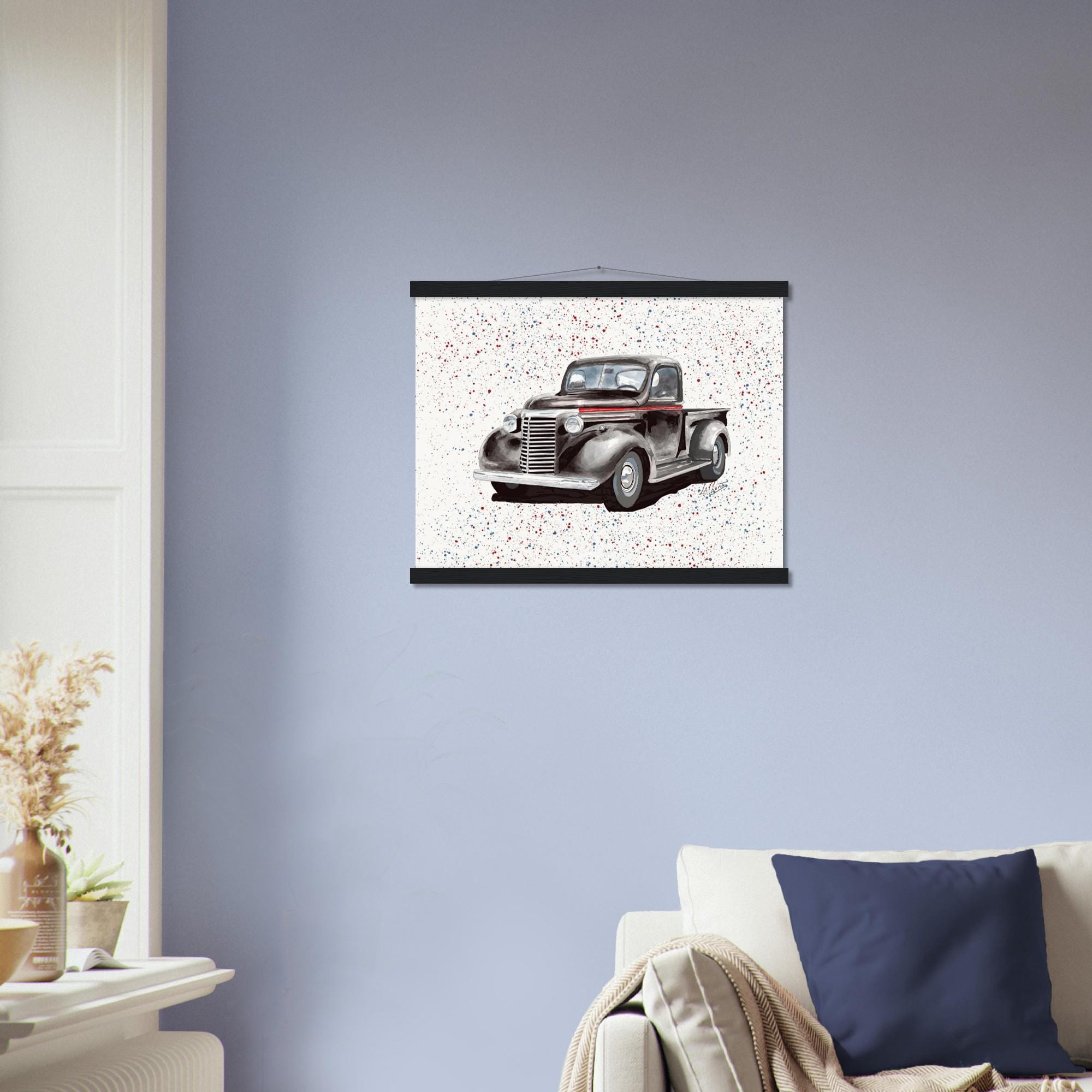 Retro Chevy Truck Print: 1940s Classic Car Poster on Wooden Hanger