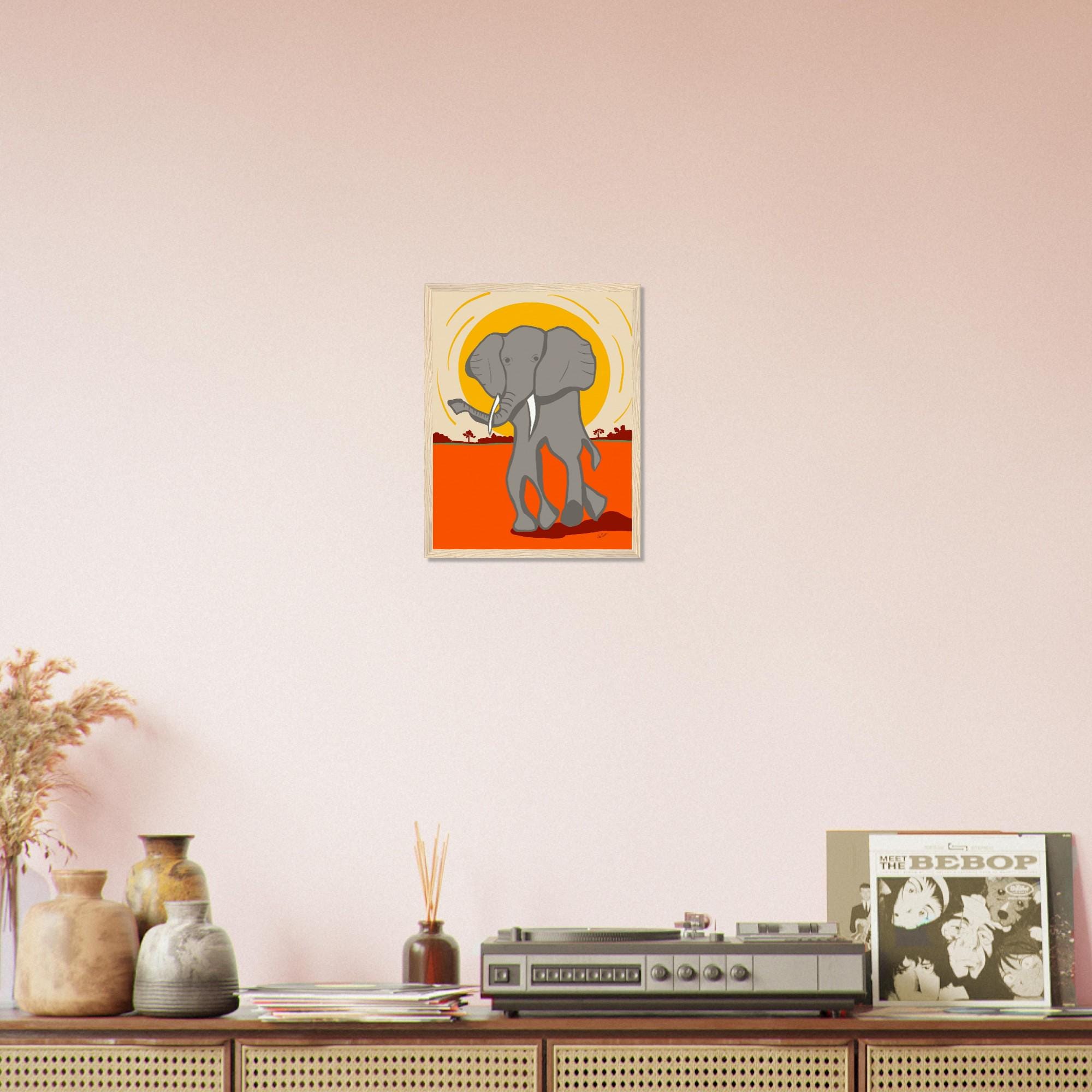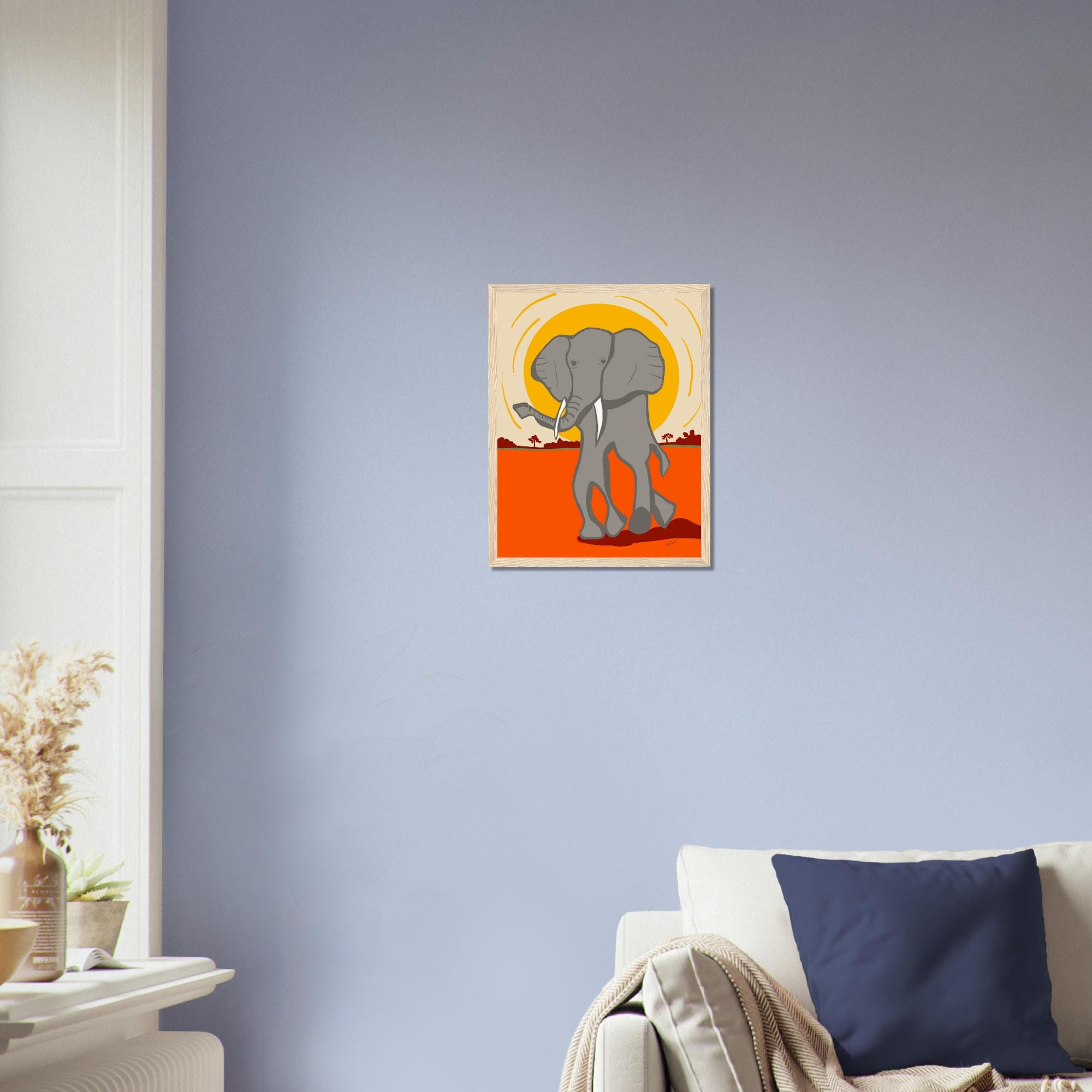 Elephant Wooden Framed Print: African Art Style Wall Decor
