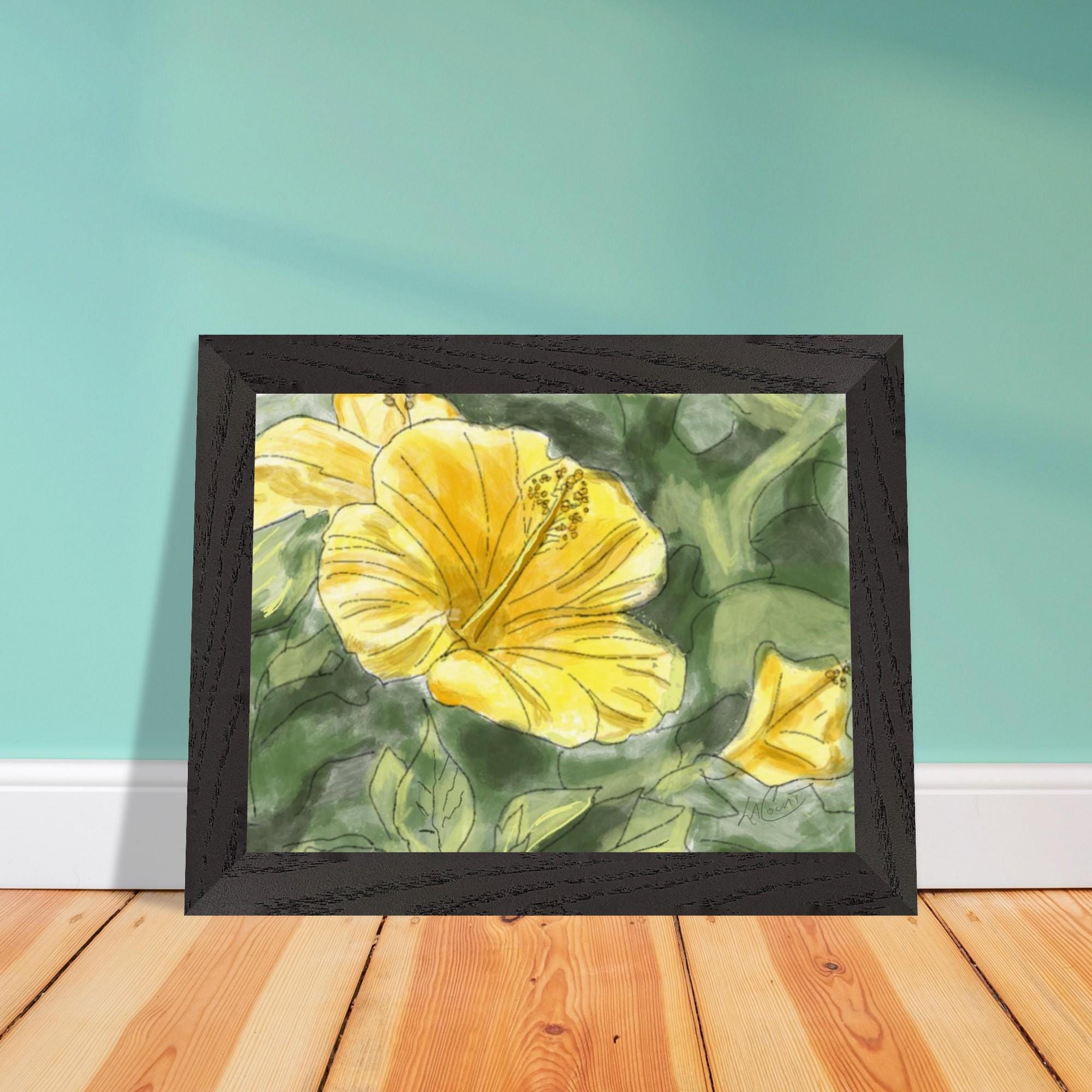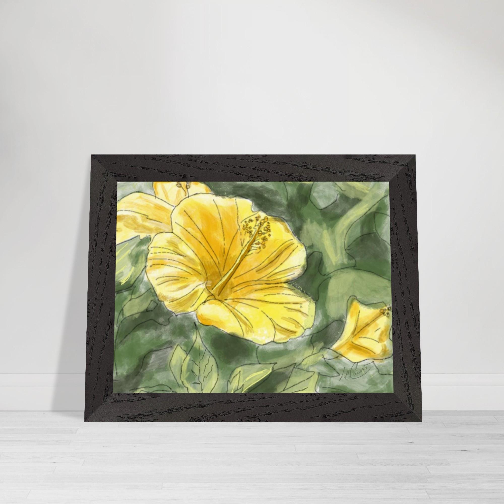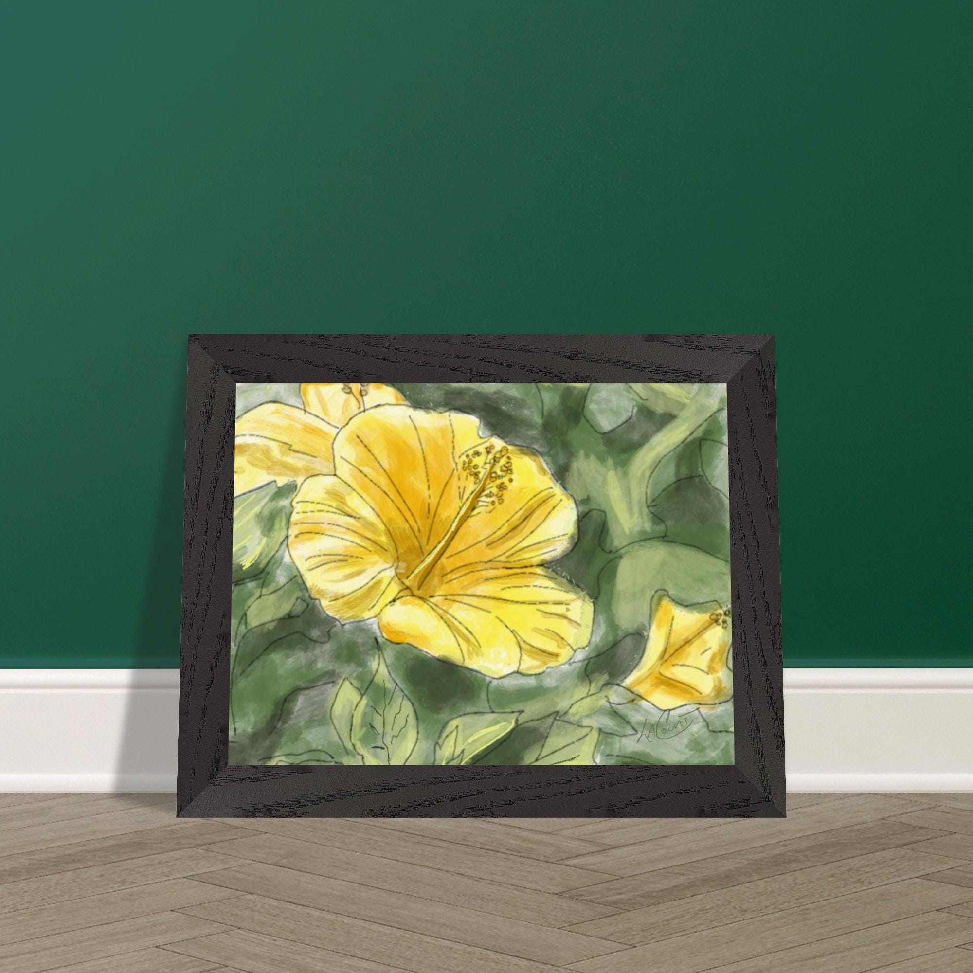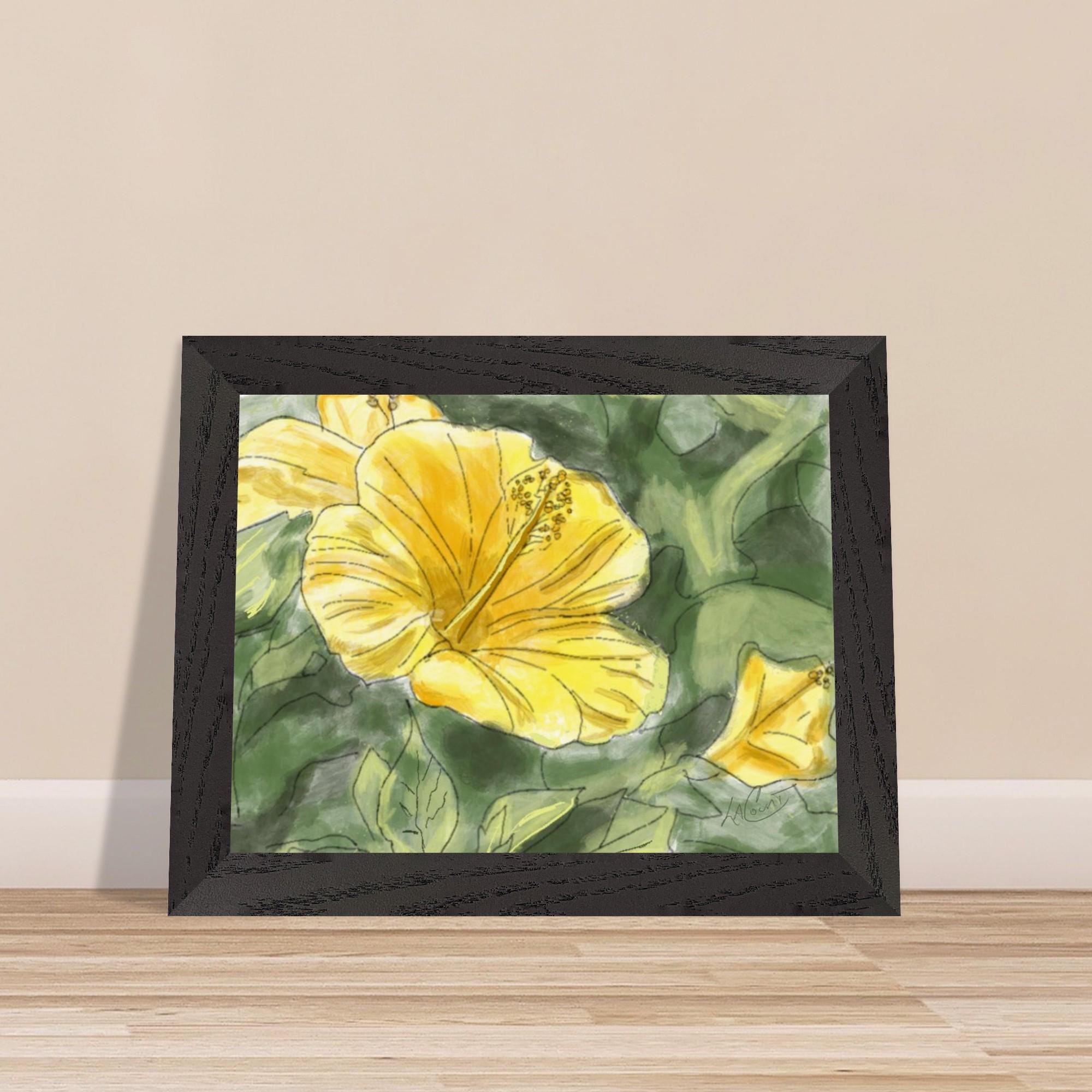 Framed Yellow Hibiscus Watercolor Art Print: Tropical Home Decor (6x8)