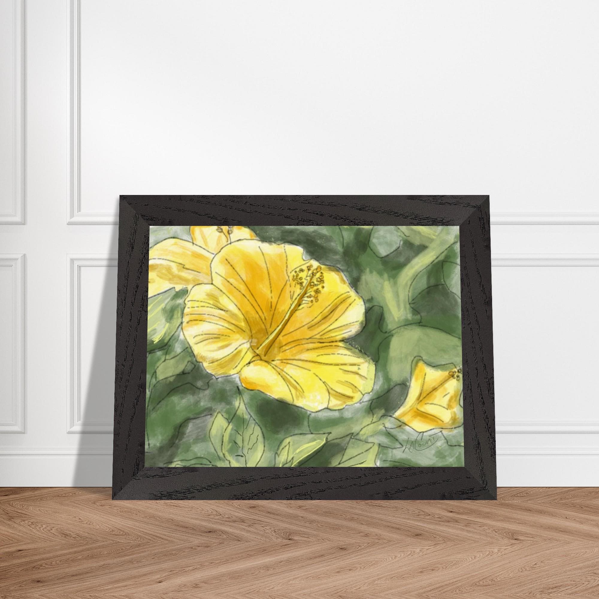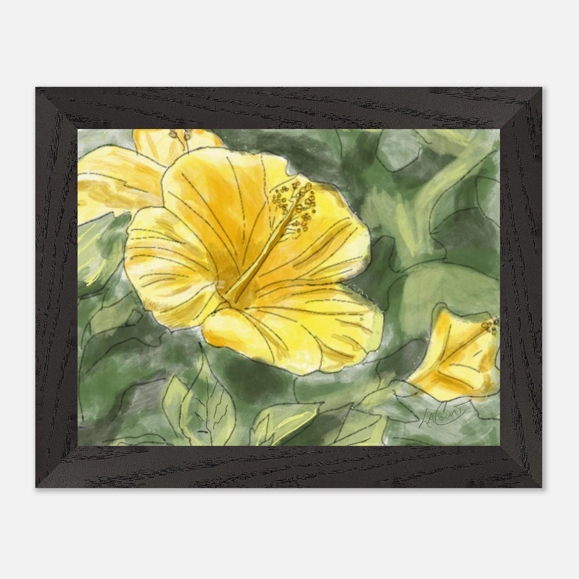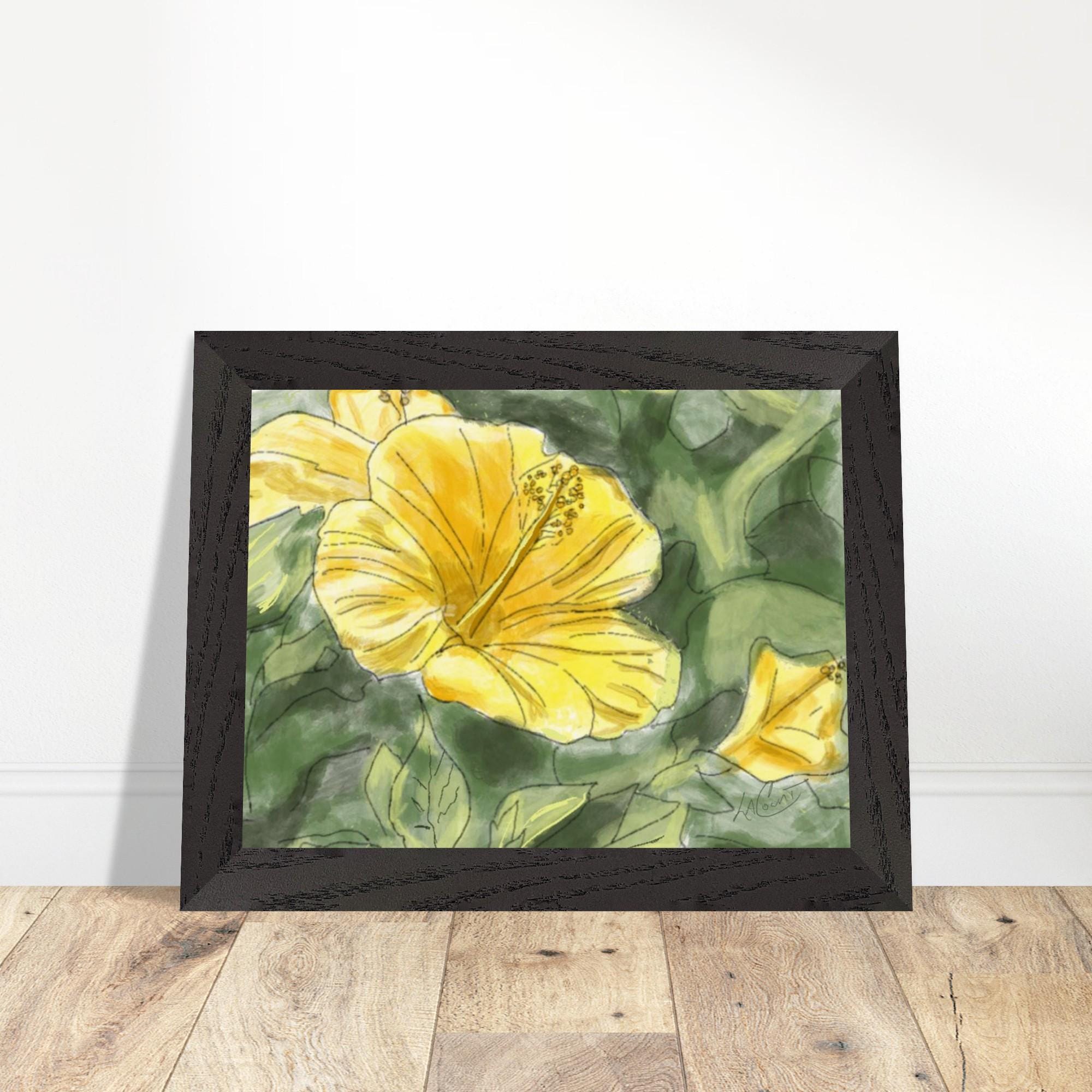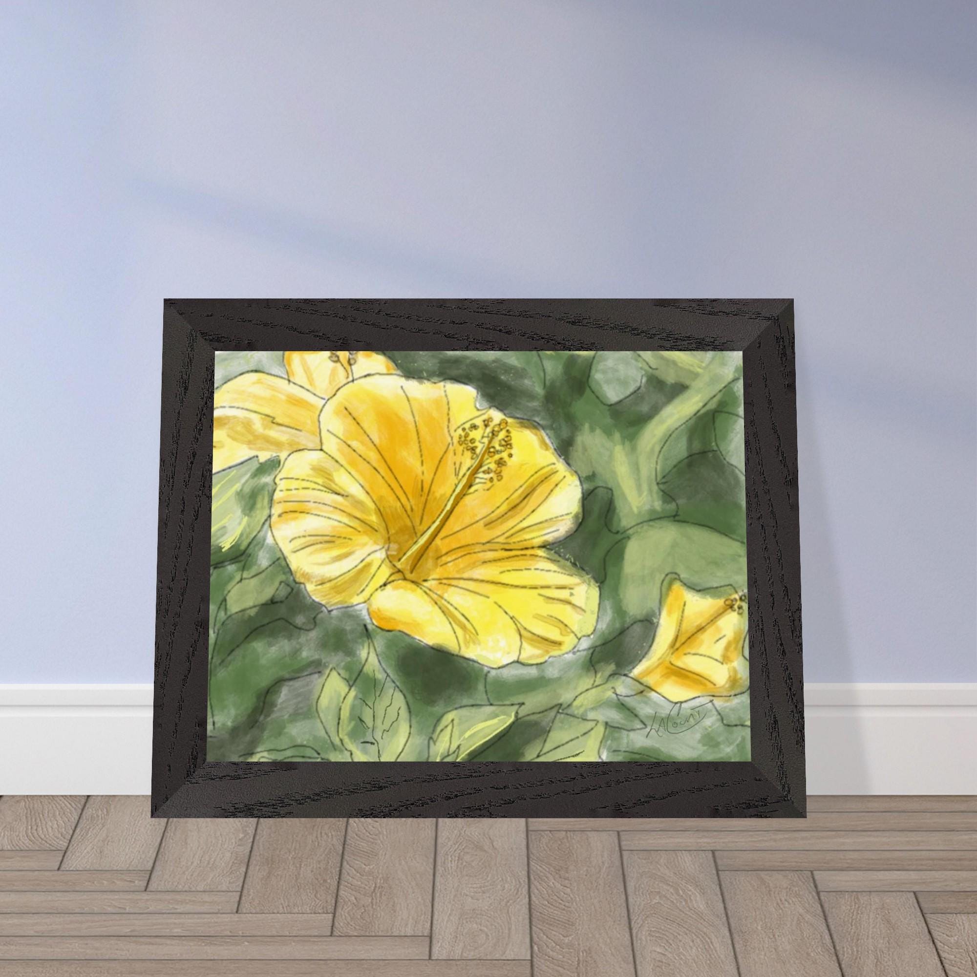 Framed Yellow Hibiscus Watercolor Art Print: Tropical Home Decor (6x8)
