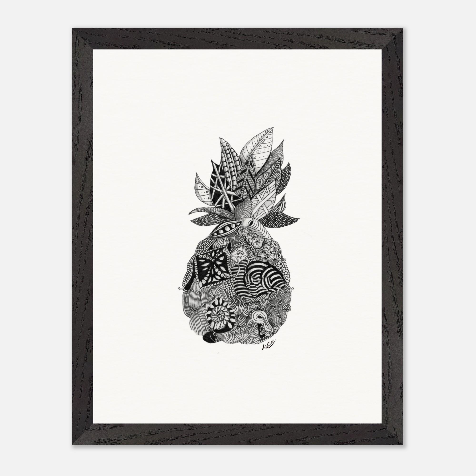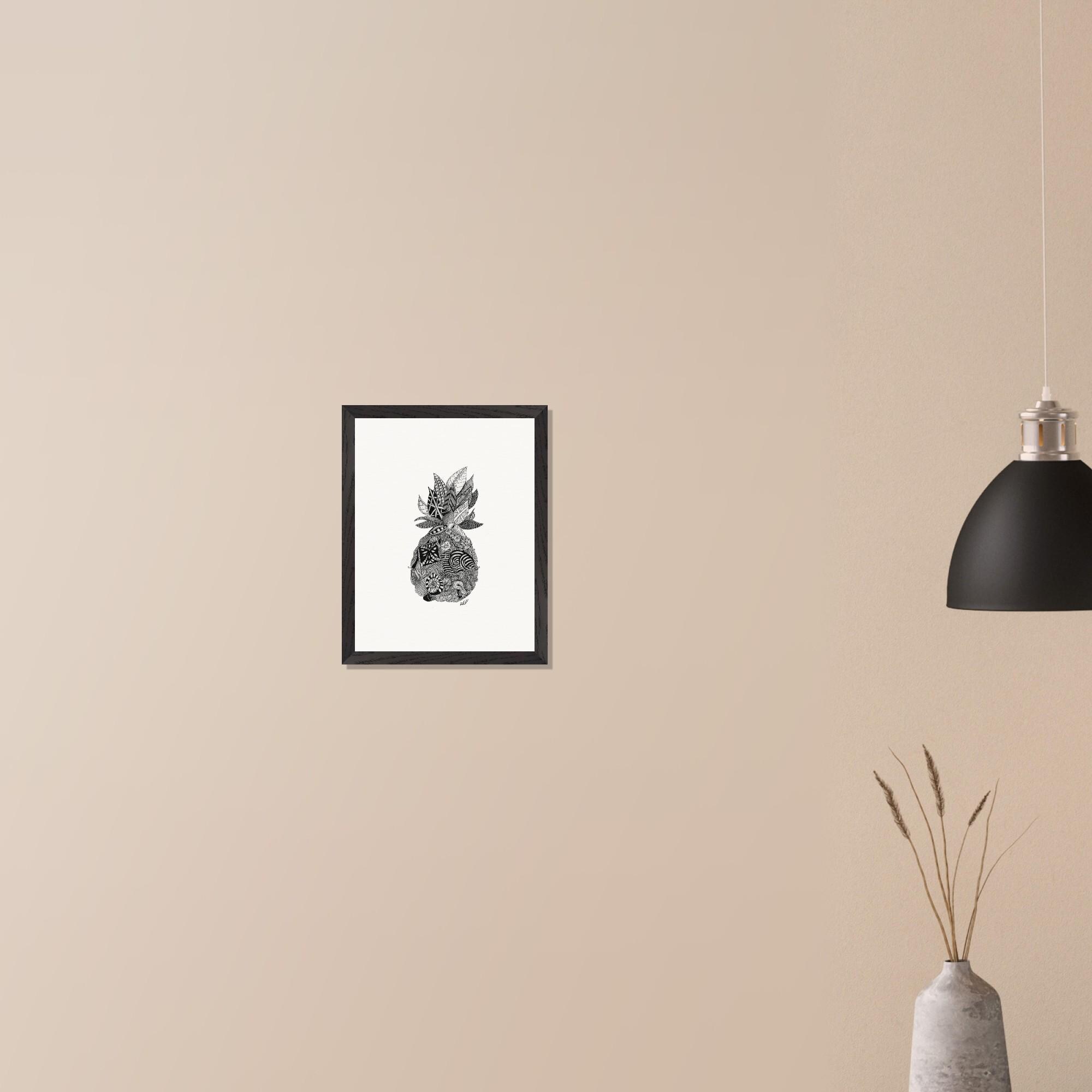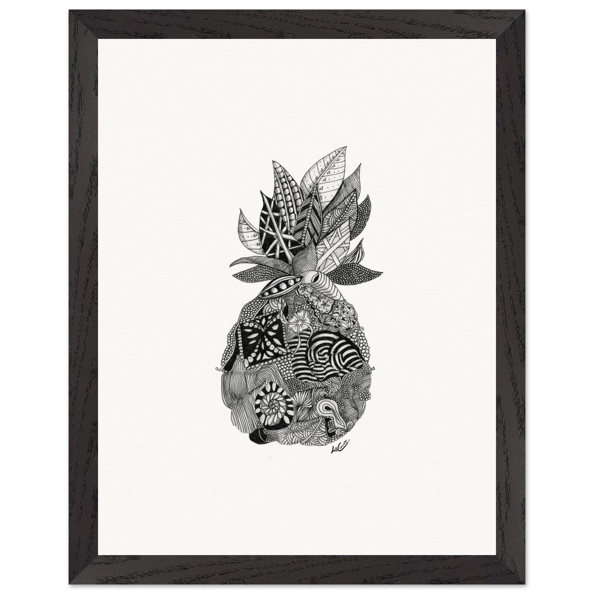 Framed Pineapple Print: Black and White Pen & Ink Tropical Wall Art