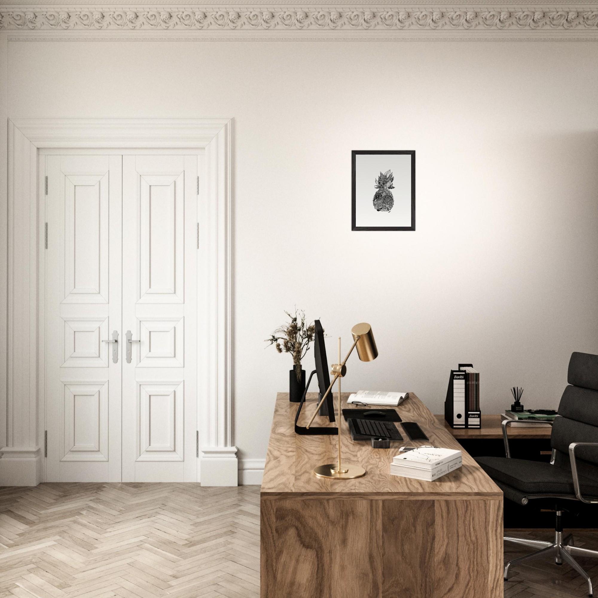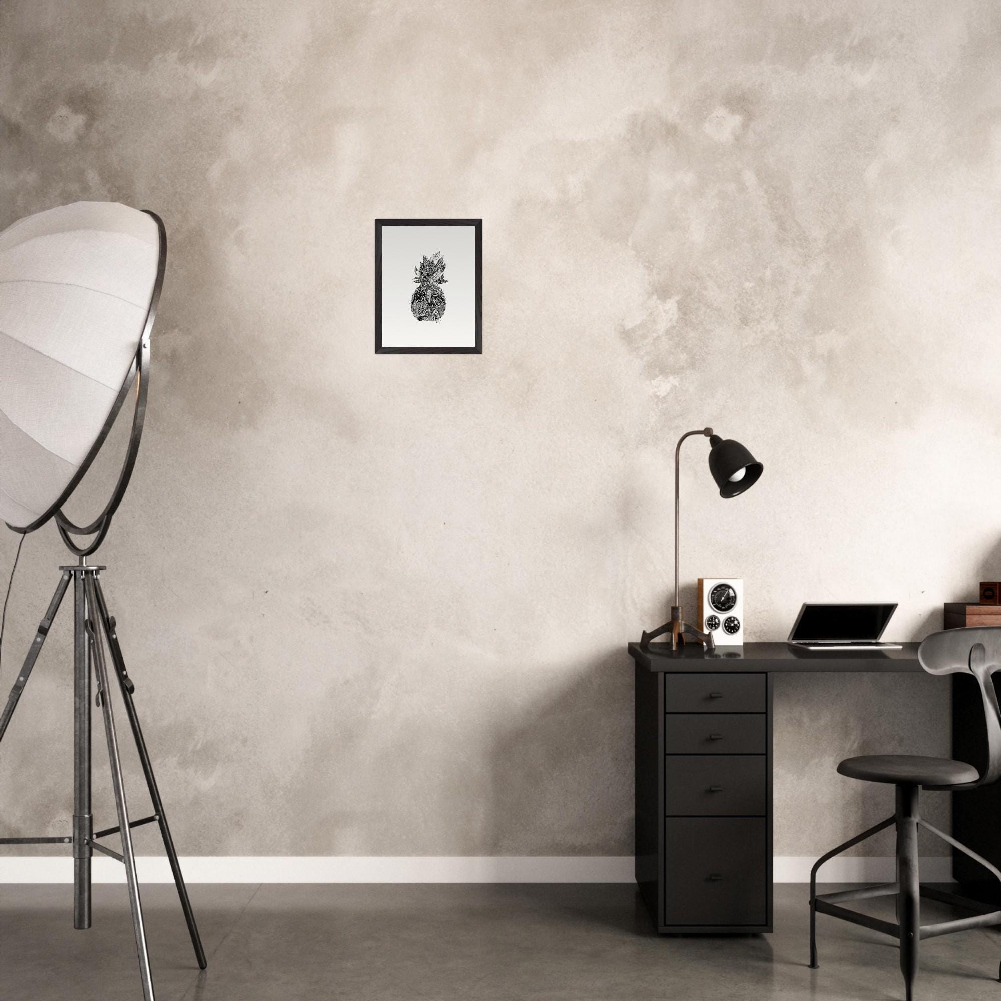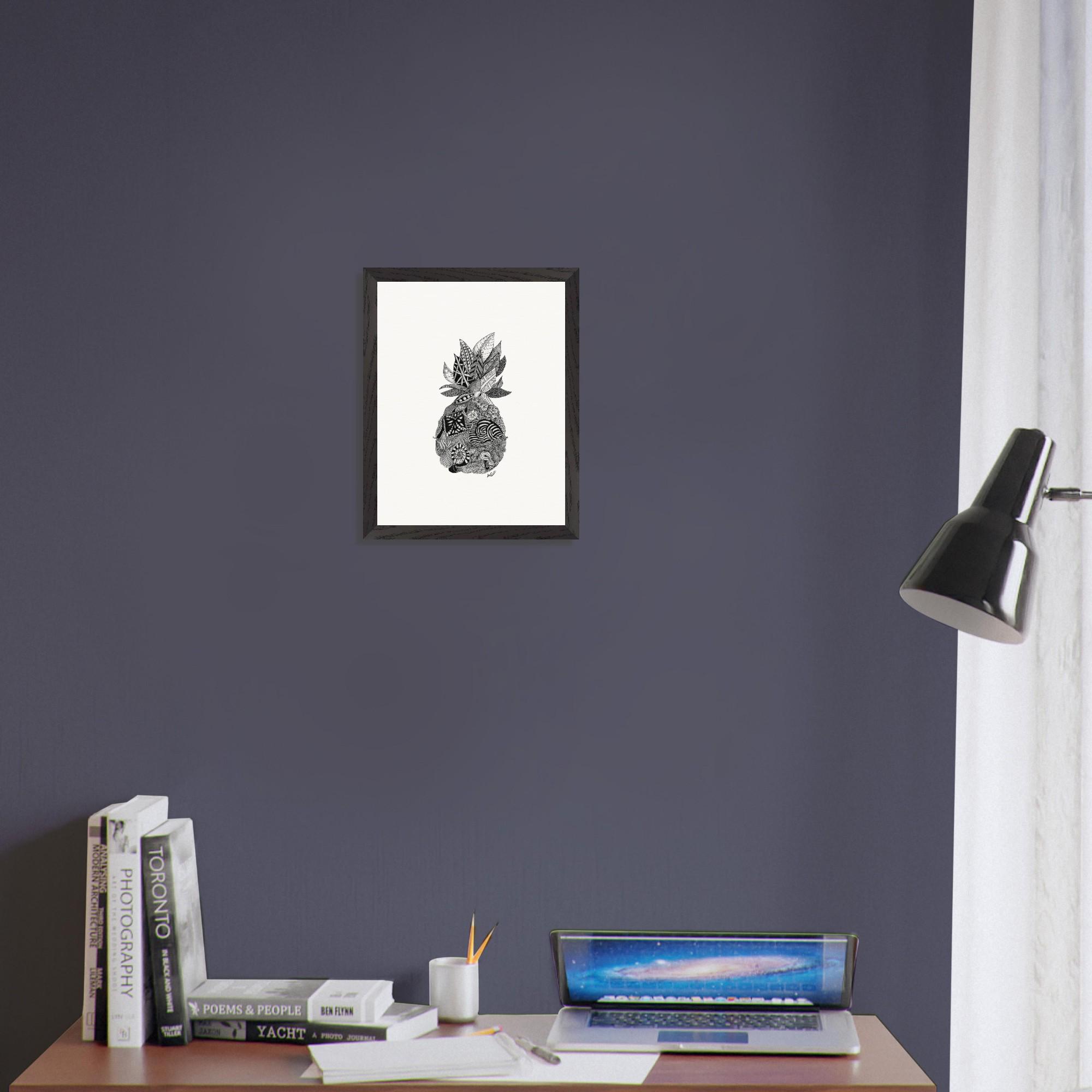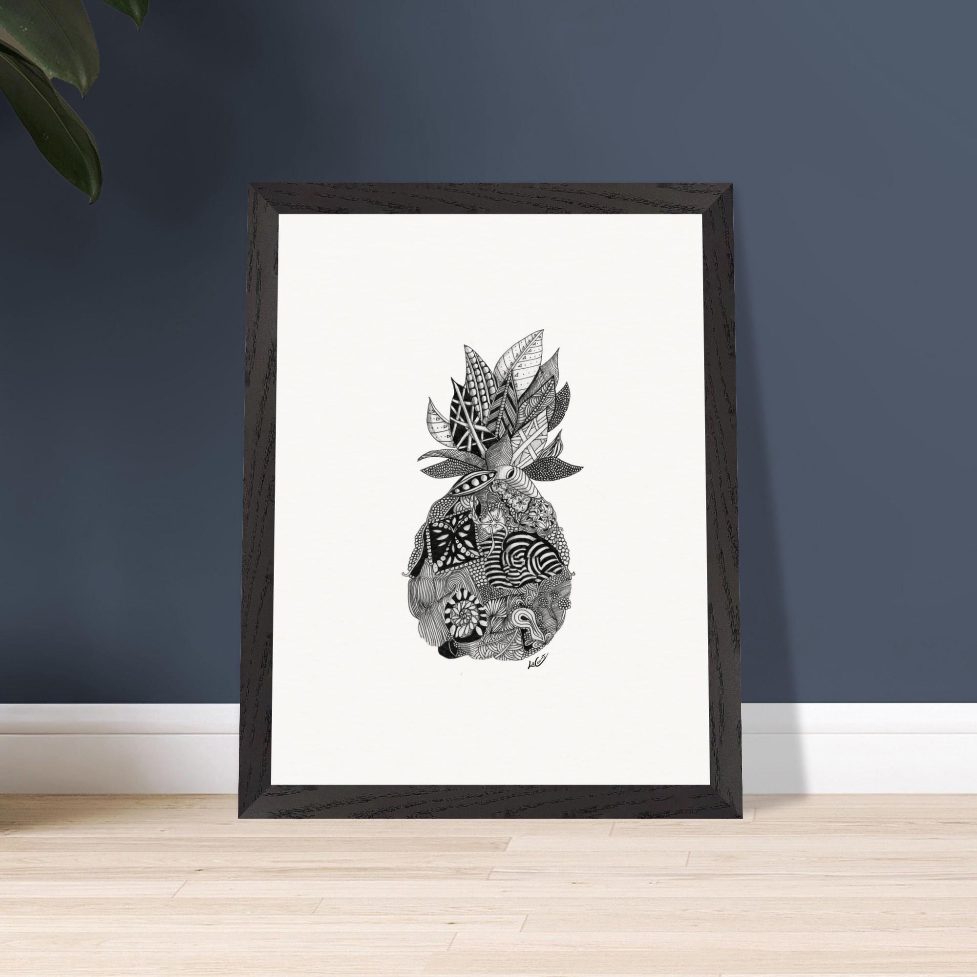 Framed Pineapple Print: Black and White Pen & Ink Tropical Wall Art