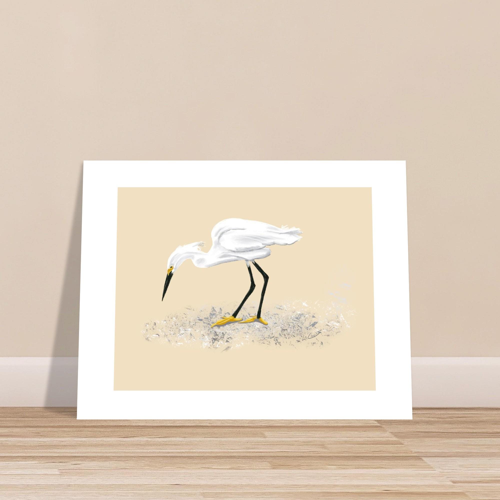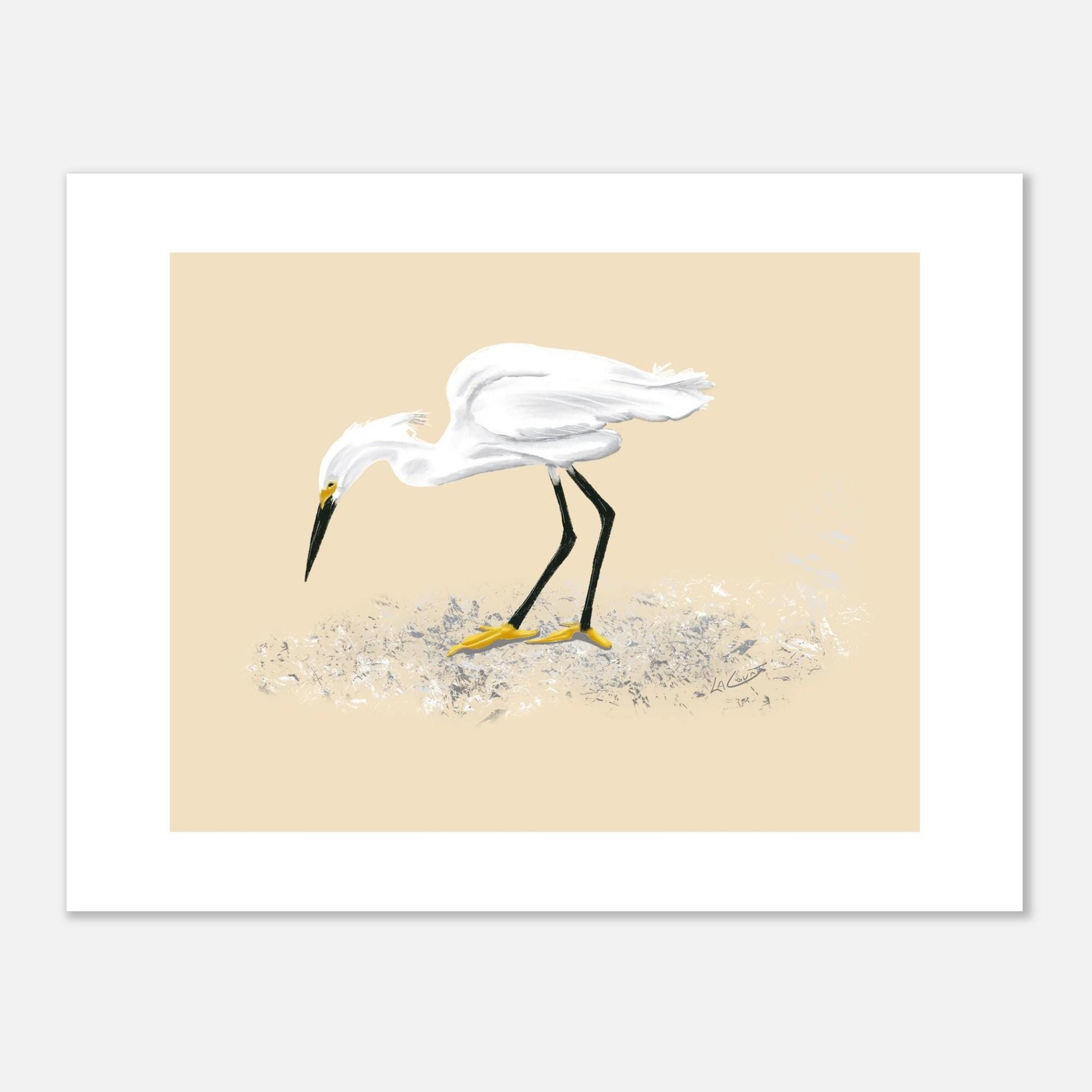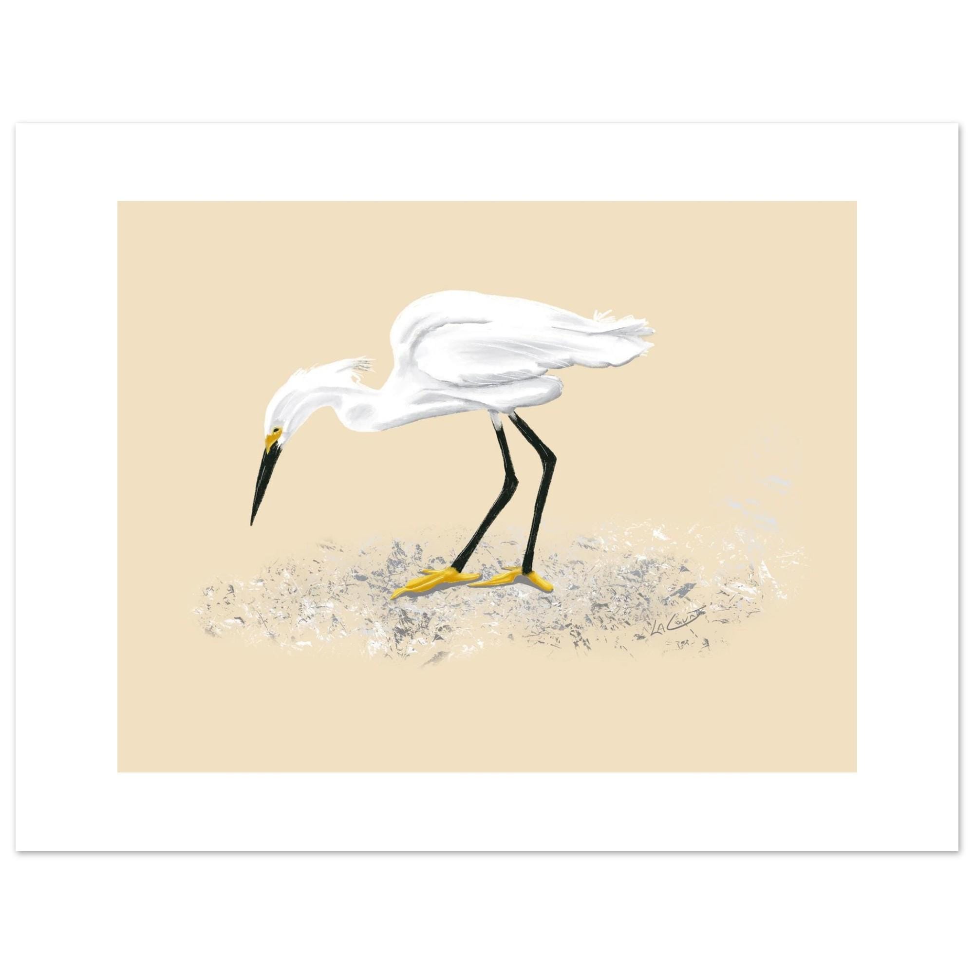 Snowy Egret Feeding Art Print - Unframed Nature Painting, 3 Size Options