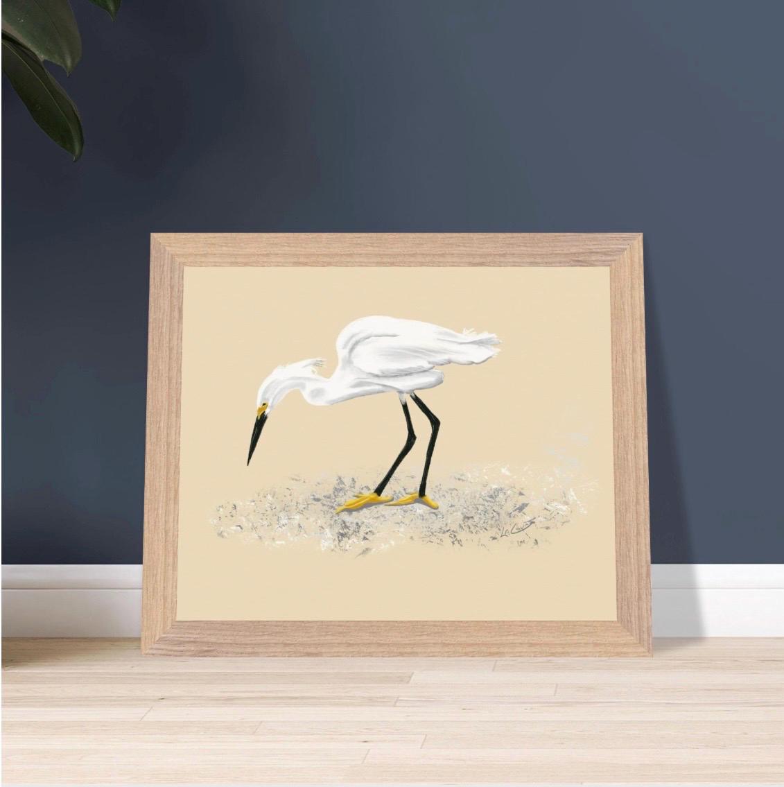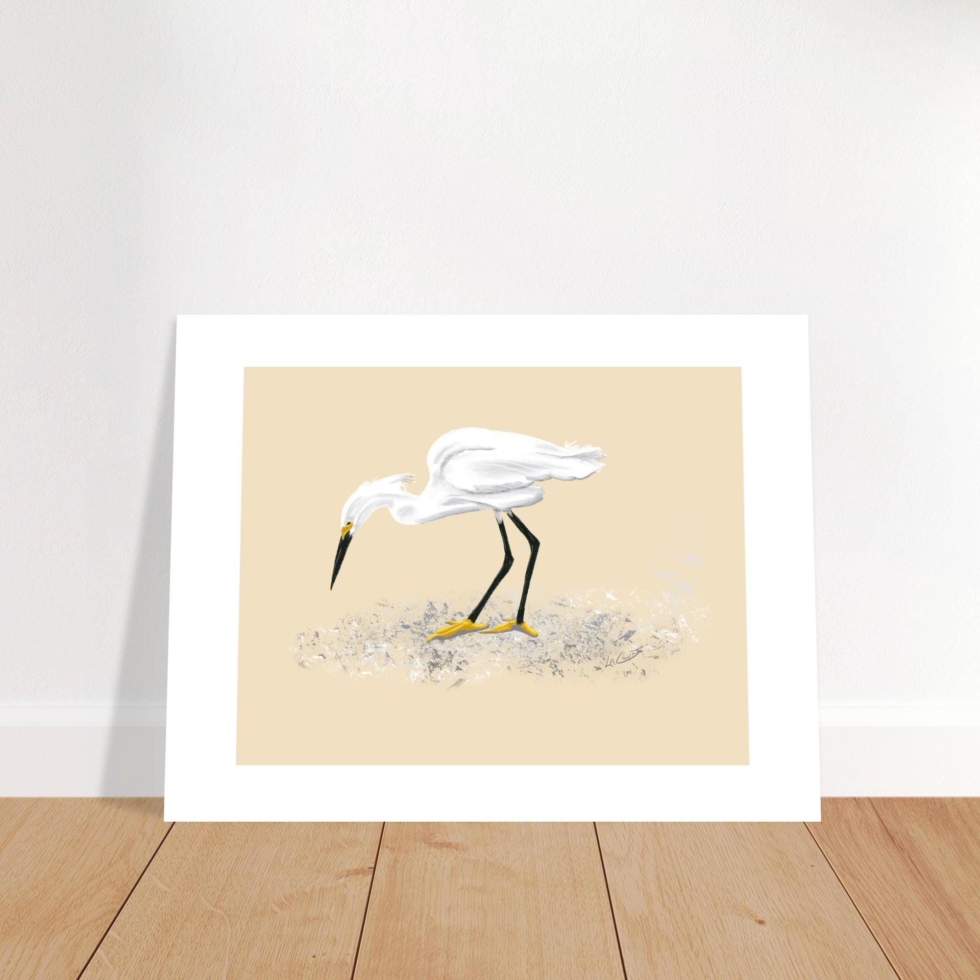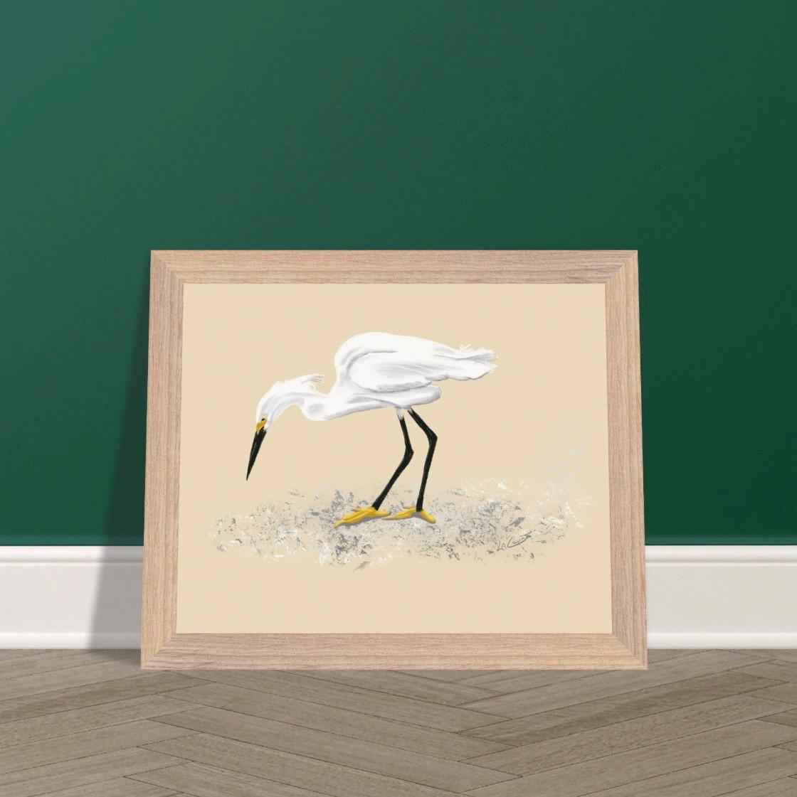 Snowy Egret Feeding Art Print - Unframed Nature Painting, 3 Size Options