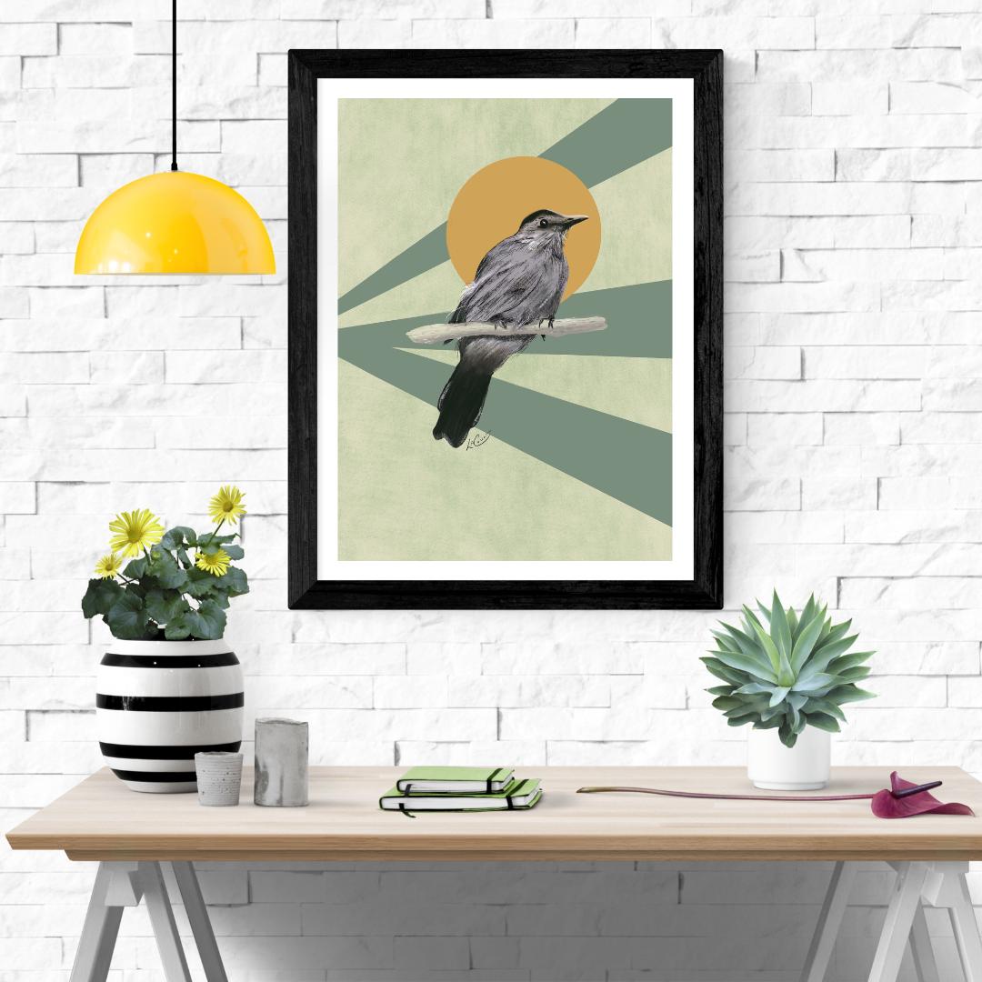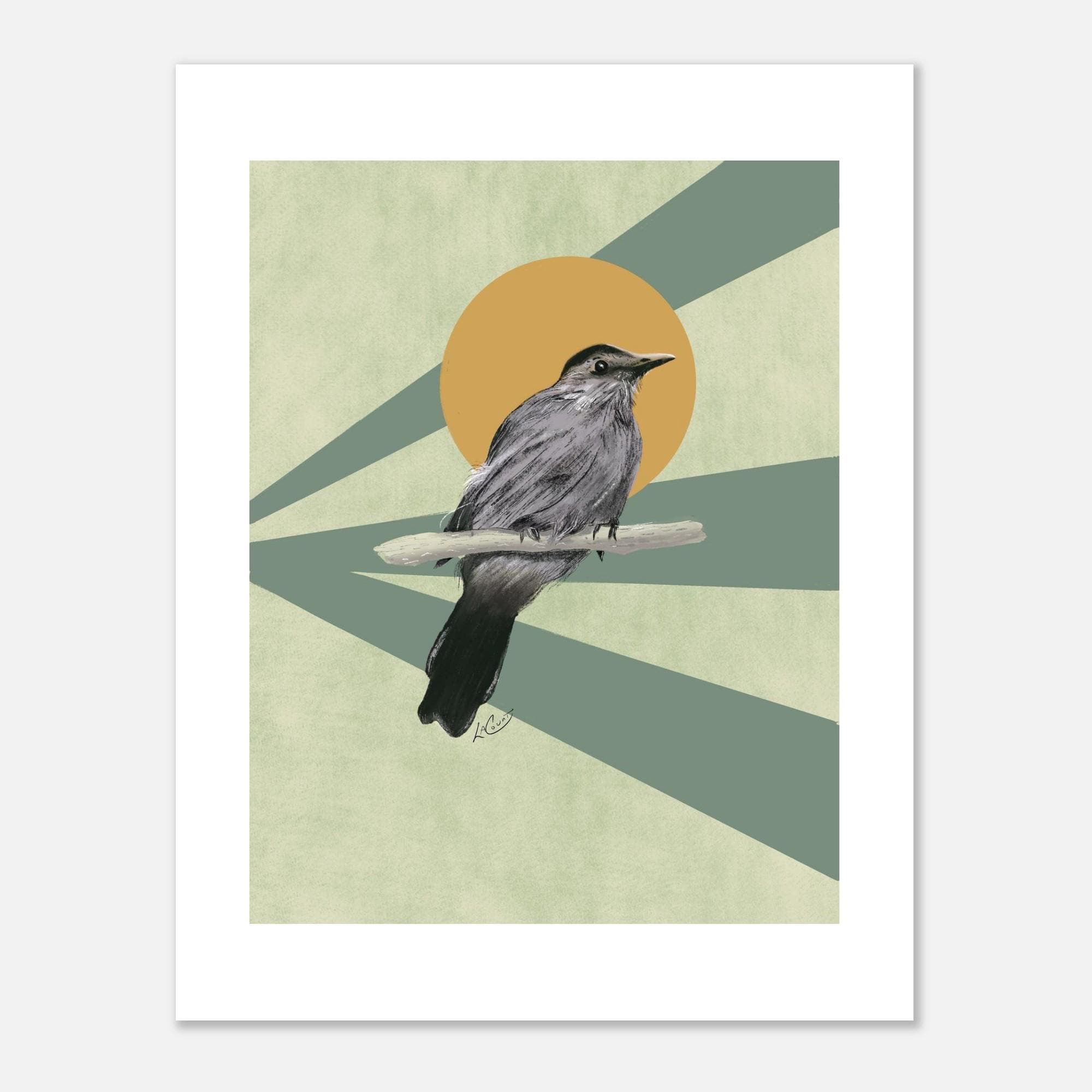 Unframed Gray Catbird Print - Abstract Green Art - Fits Standard Frames - Wall Decor