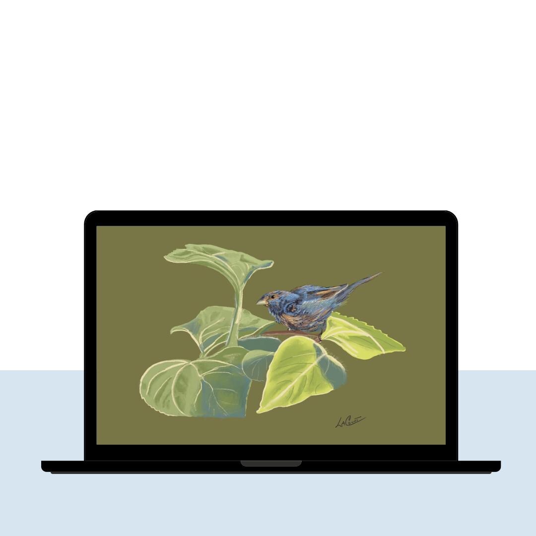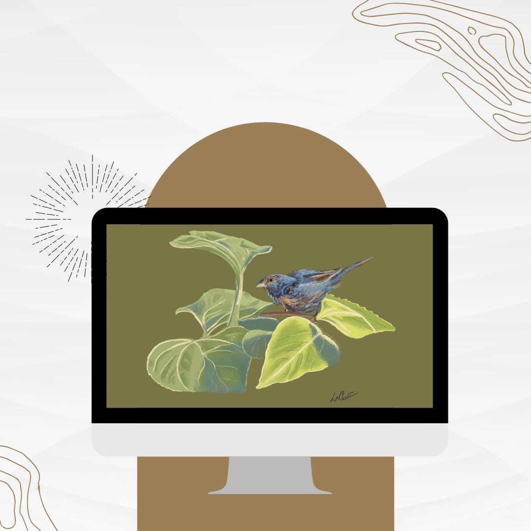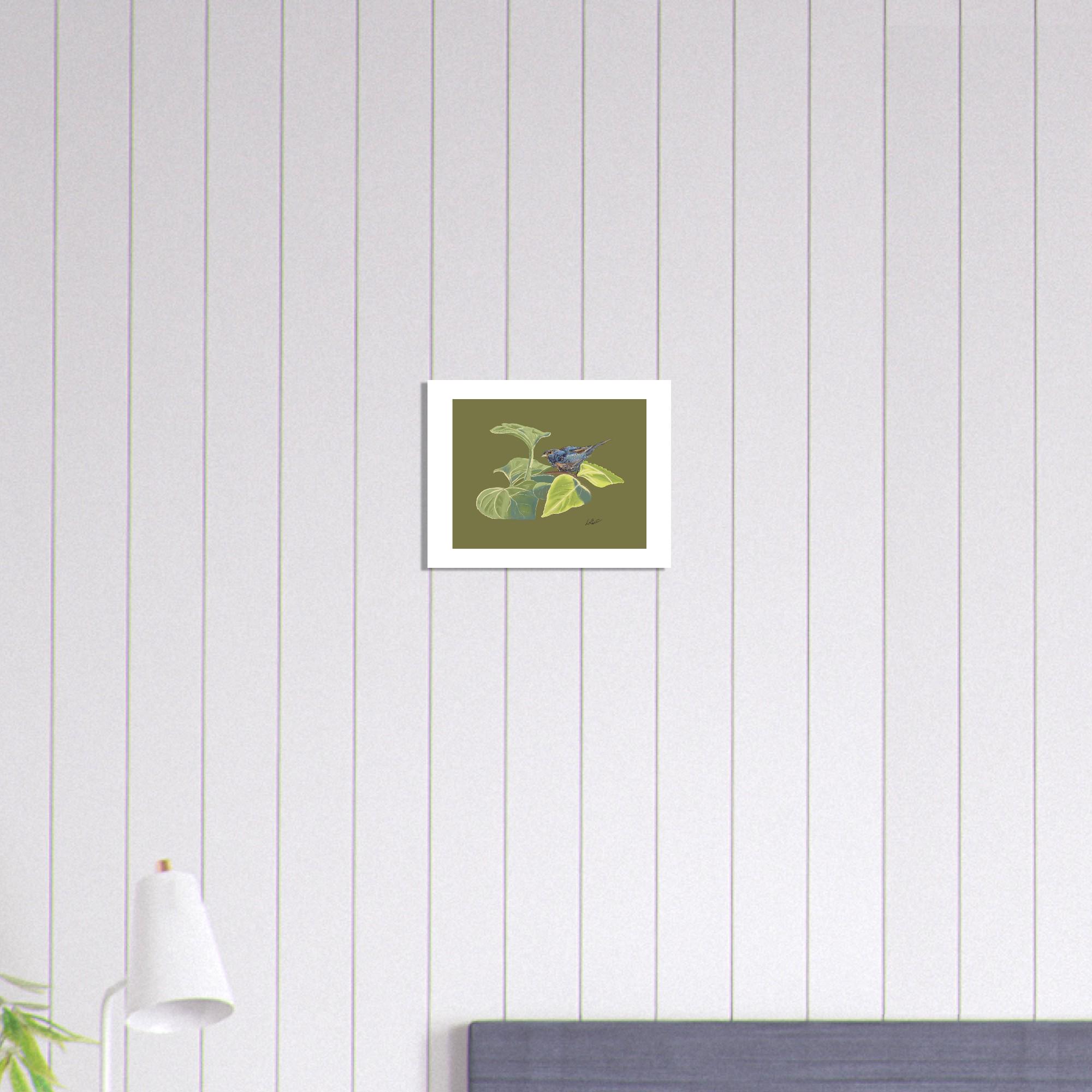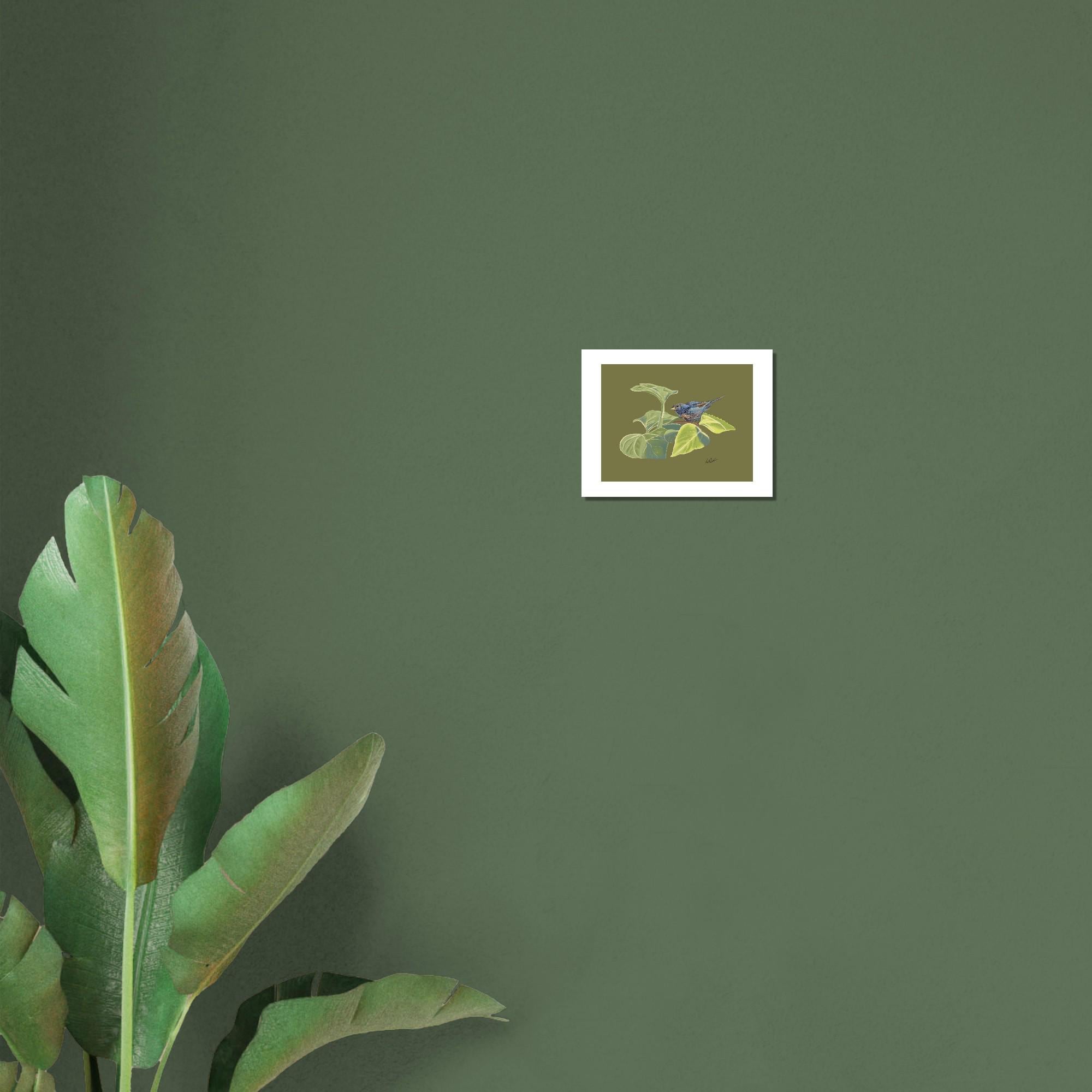 Bring the beauty of nature into your home with this unframed print featuring my painting of the stunning Indigo Bunting bird. Set against a beautiful green background, it is designed to easily fit into a frame with a crisp white border, adding a touch of elegance to any space. A lovely addition to your art collection or a perfect gift for bird enthusiasts.