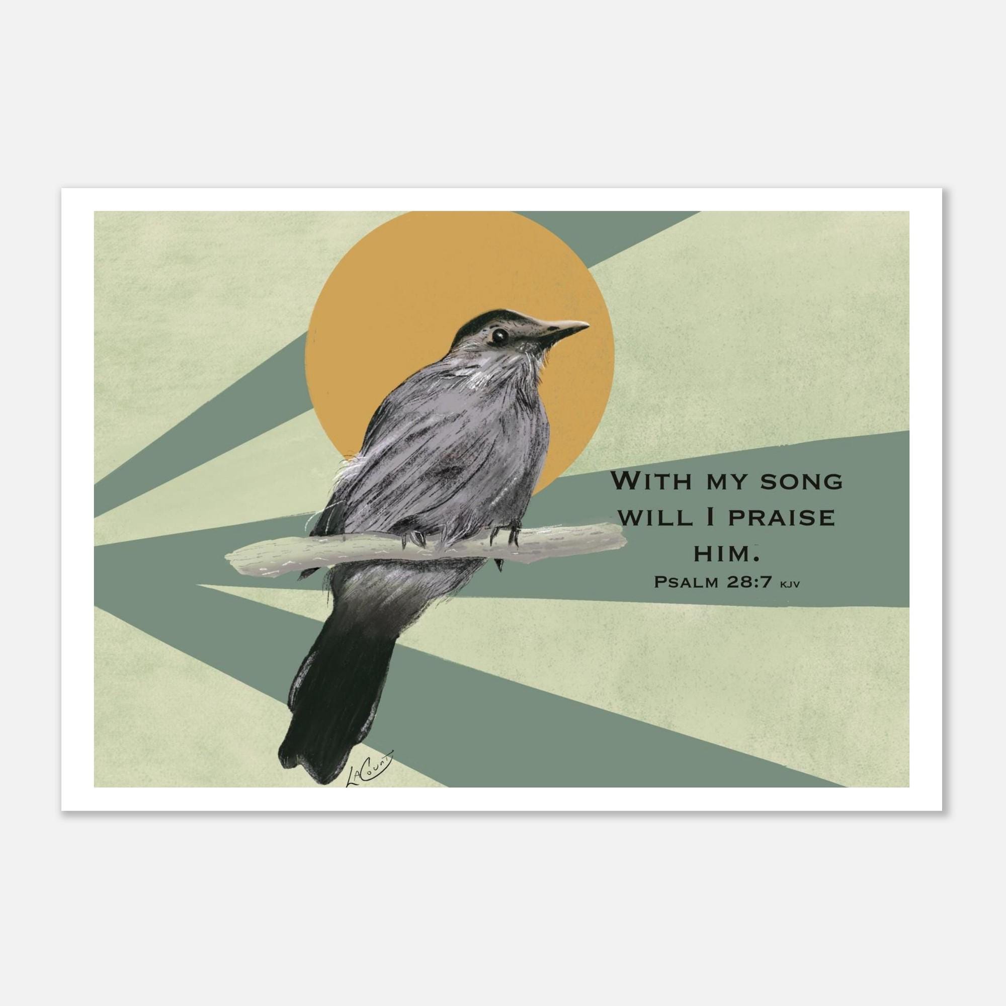 Artist LaCount Anderson has created this unique poster from his painting. It features the beautiful Psalm 28.7 and will be an inspiration to you and those who view it on your wall. Perfect for a Sunday School classroom, church office wall, or your own work or living space.This poster is made on our lightweight, uncoated classic matte paper. The perfect option to stand the test of time: