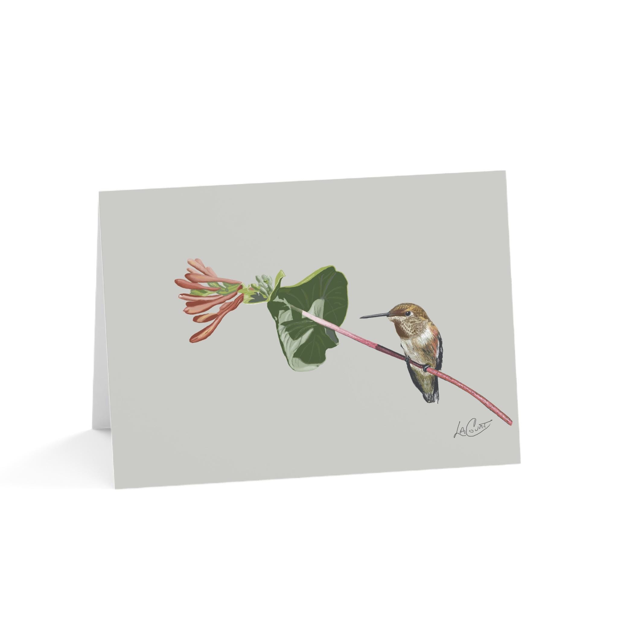 Vibrant and high-quality greeting cards featuring a little hummingbird resting on a branch. Perfect for sending heartfelt messages to loved ones on any occasion.