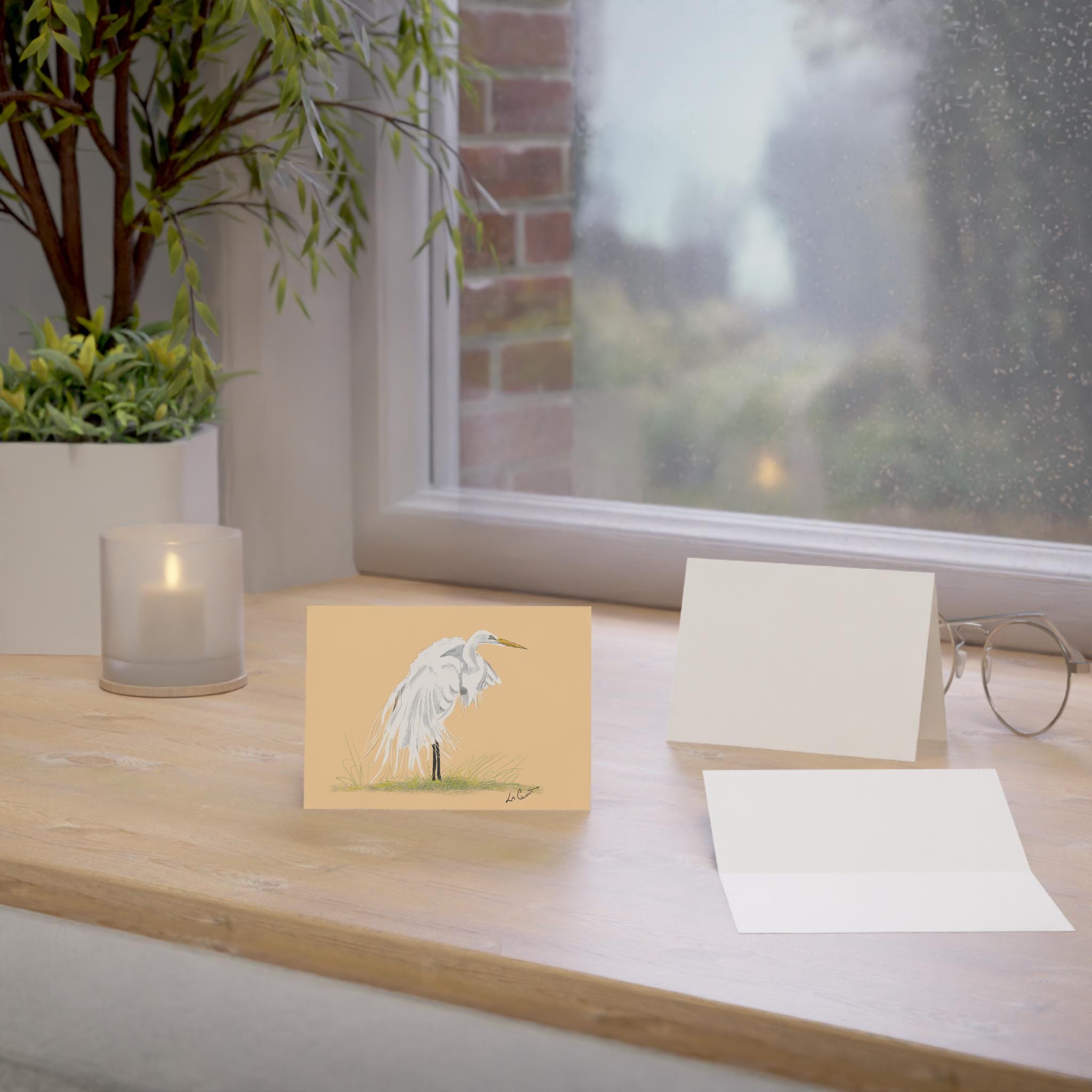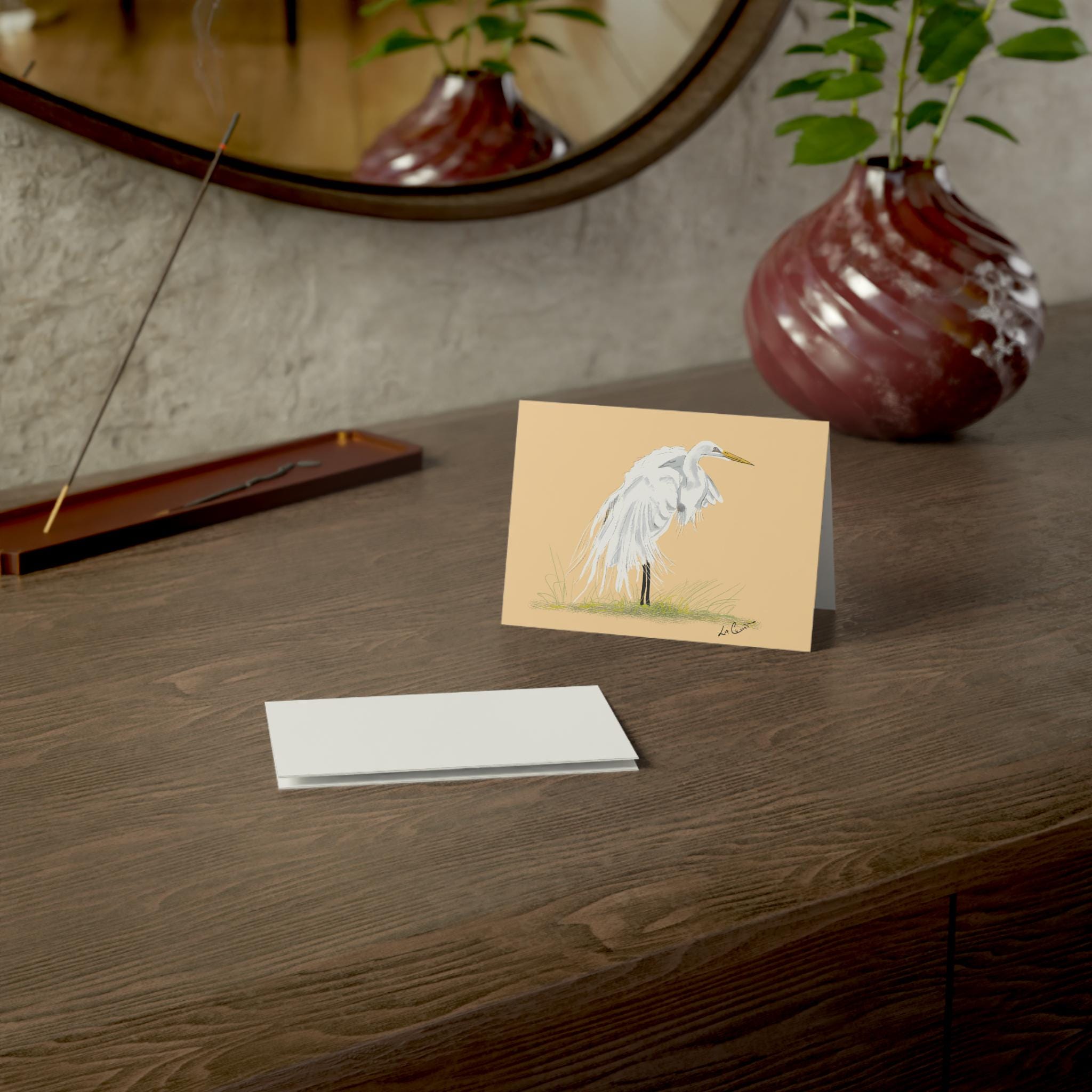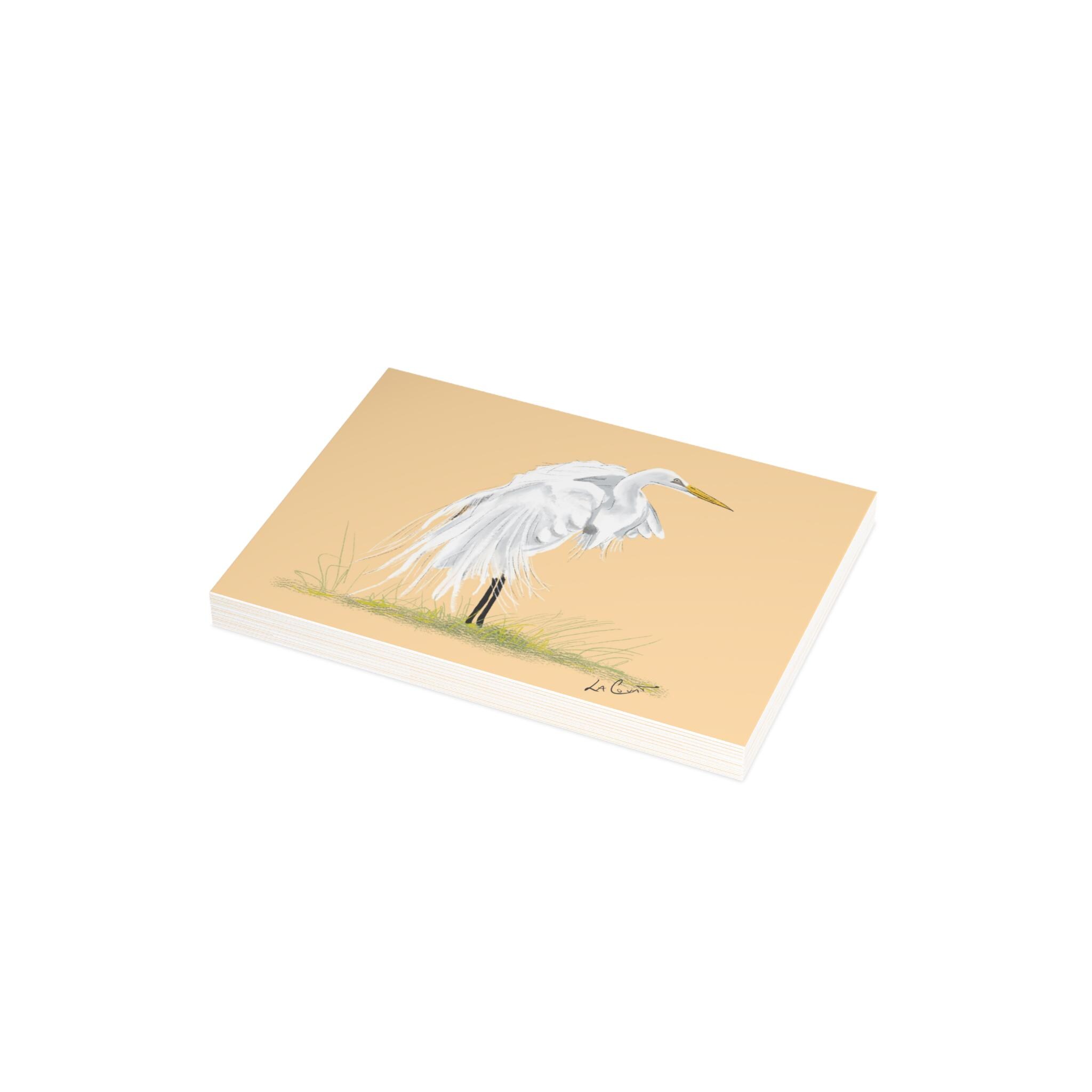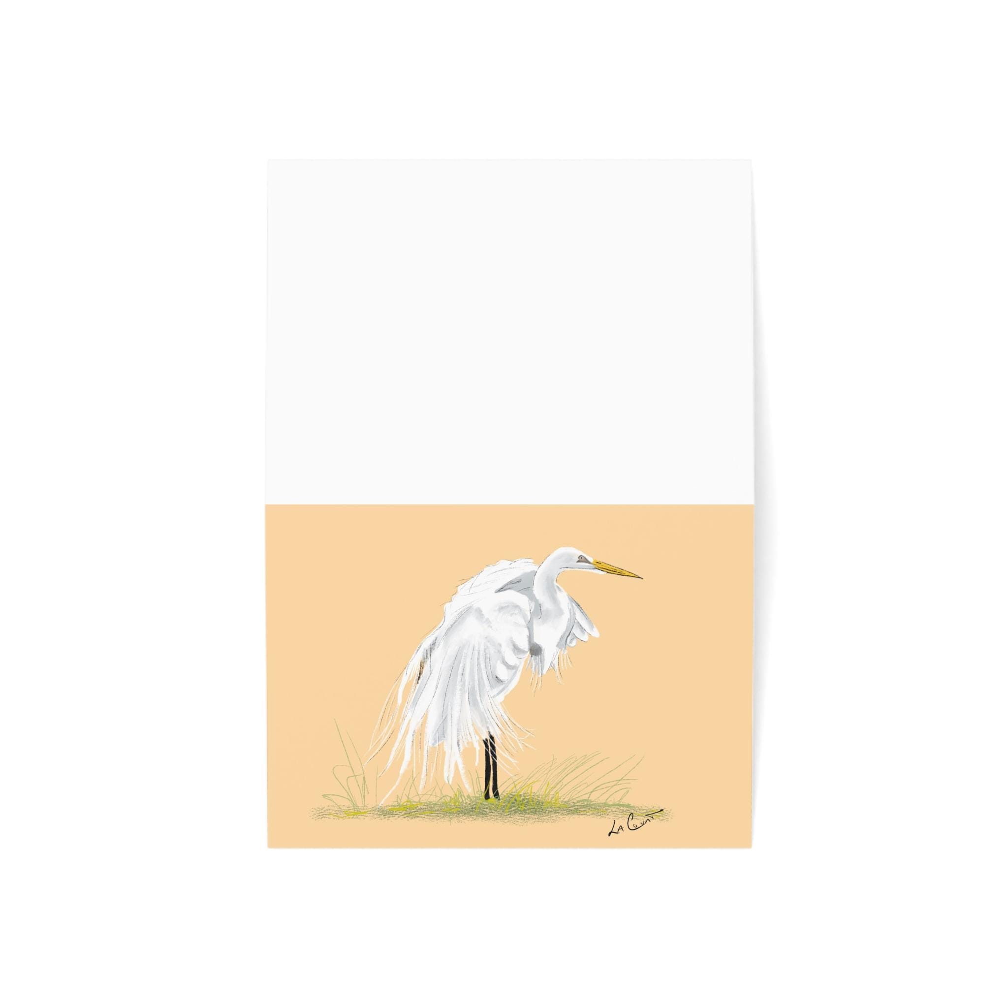 Greeting Cards, Great Egret Coastal North Carolina, Nature Note Cards, Bird Lover Stationery Set, Watercolor Blank Cards, Pack of 10,