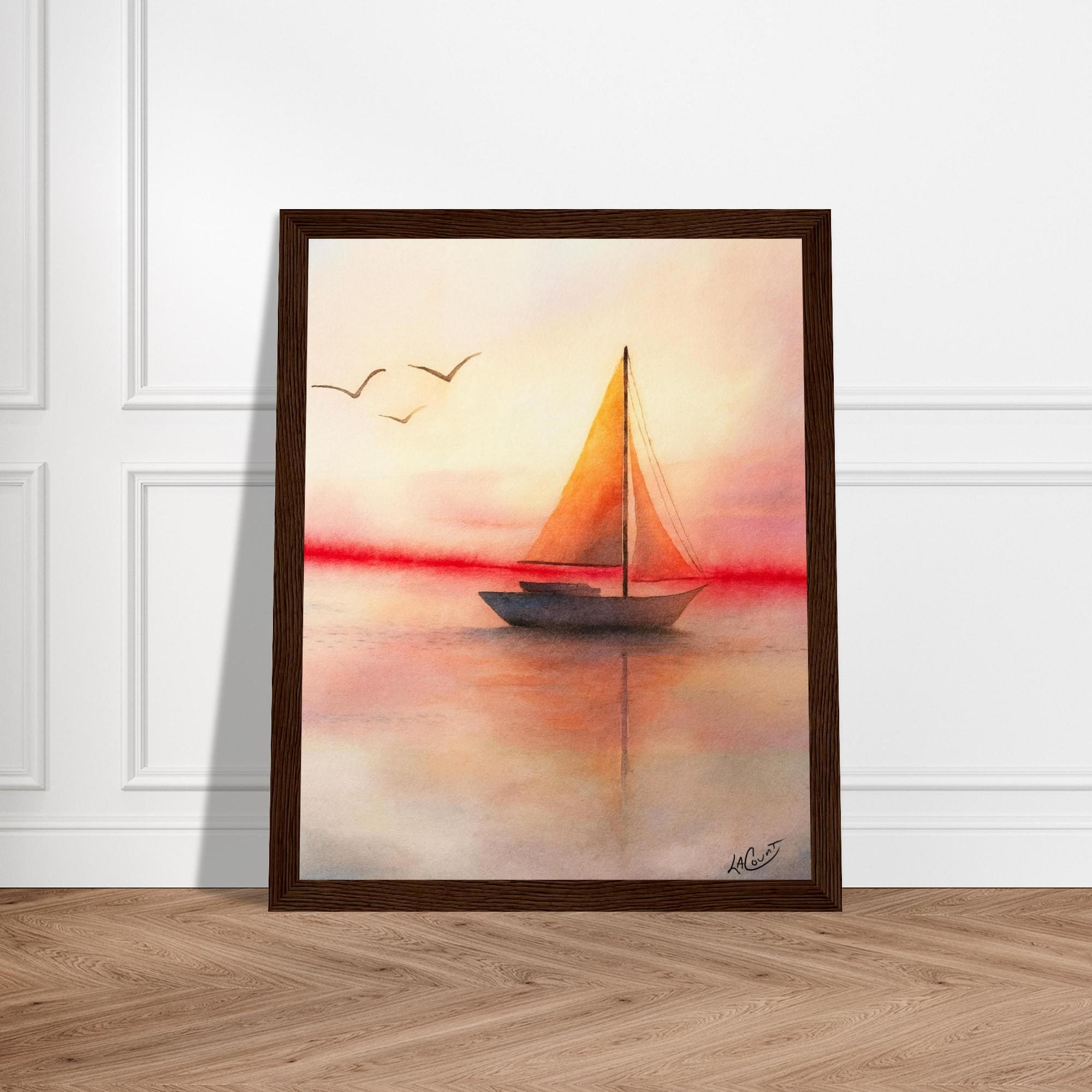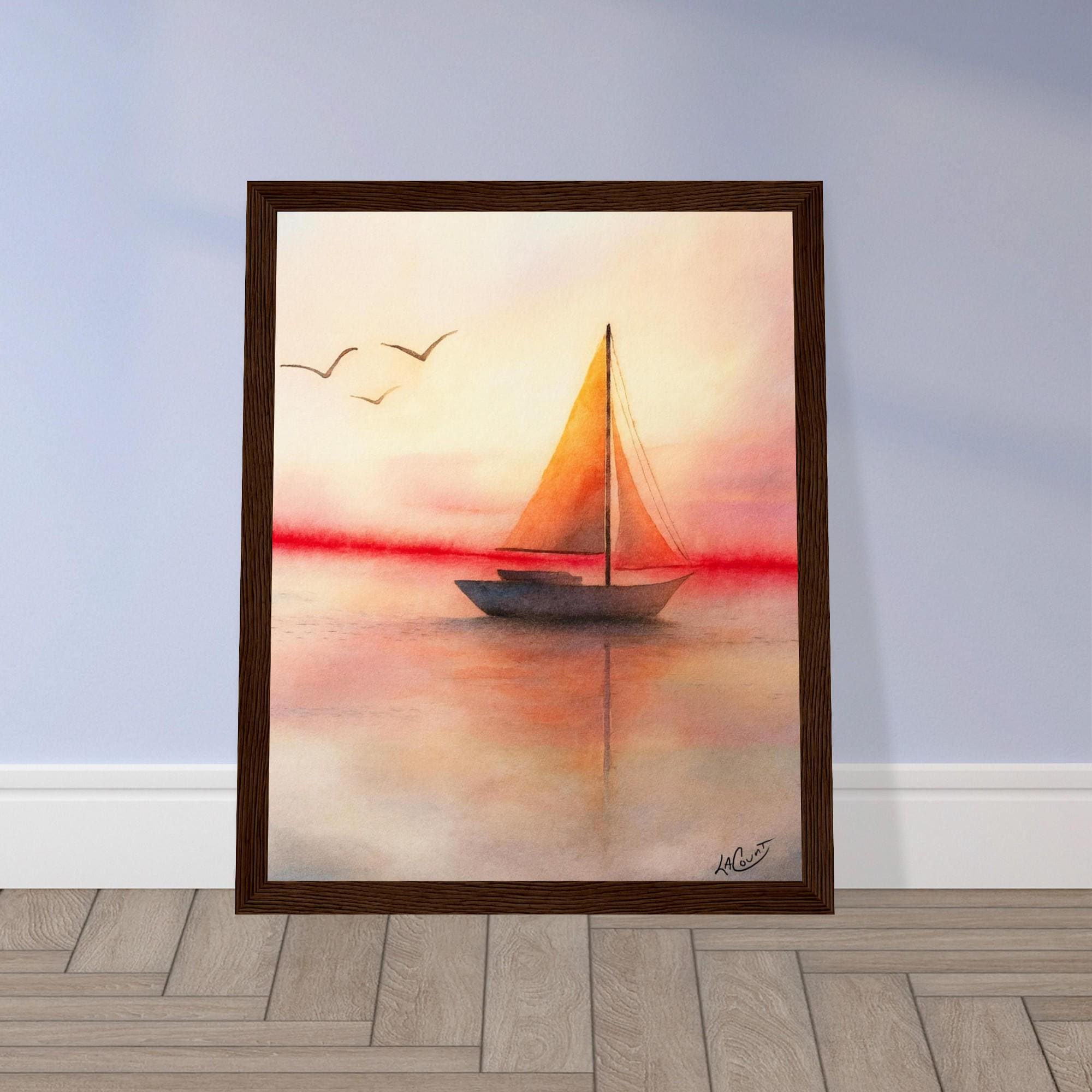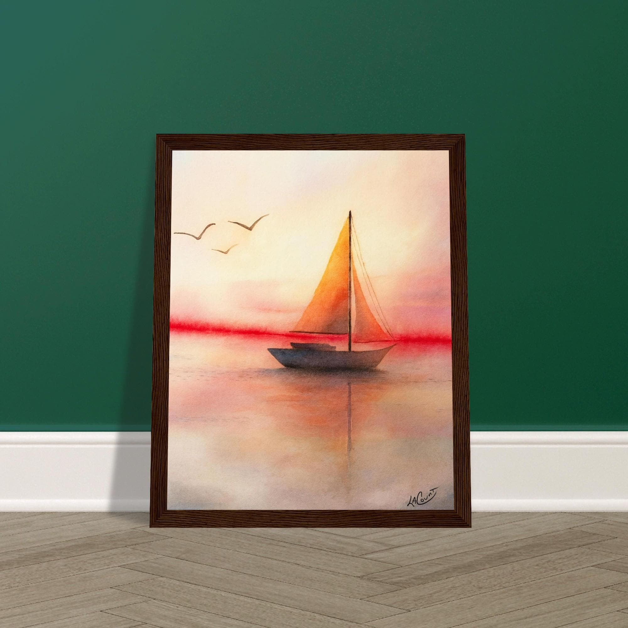 Sunrise Sail Boat Framed Print - Watercolor Art by LaCount Anderson for Beach & Lake Houses