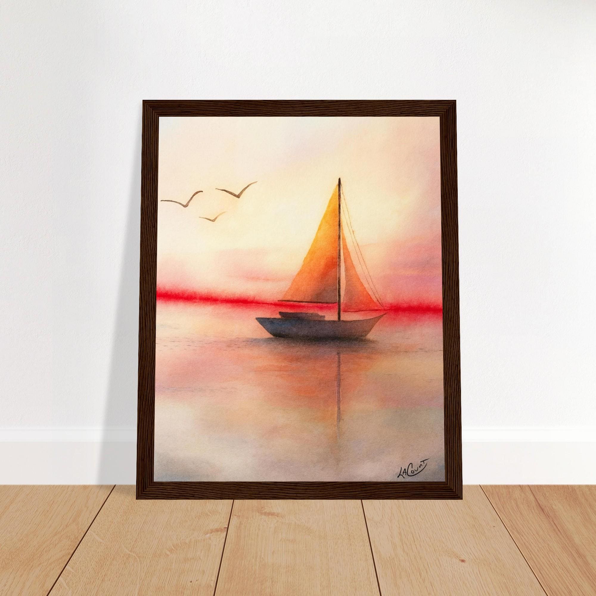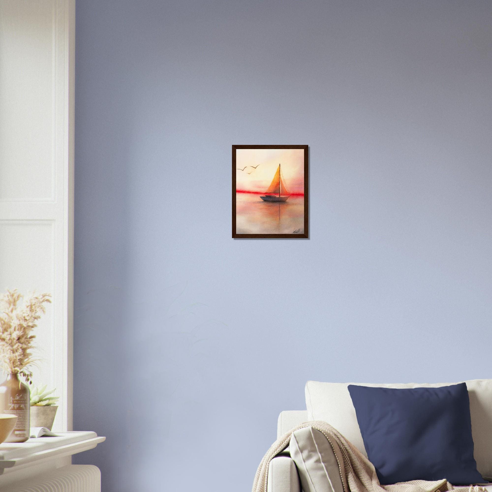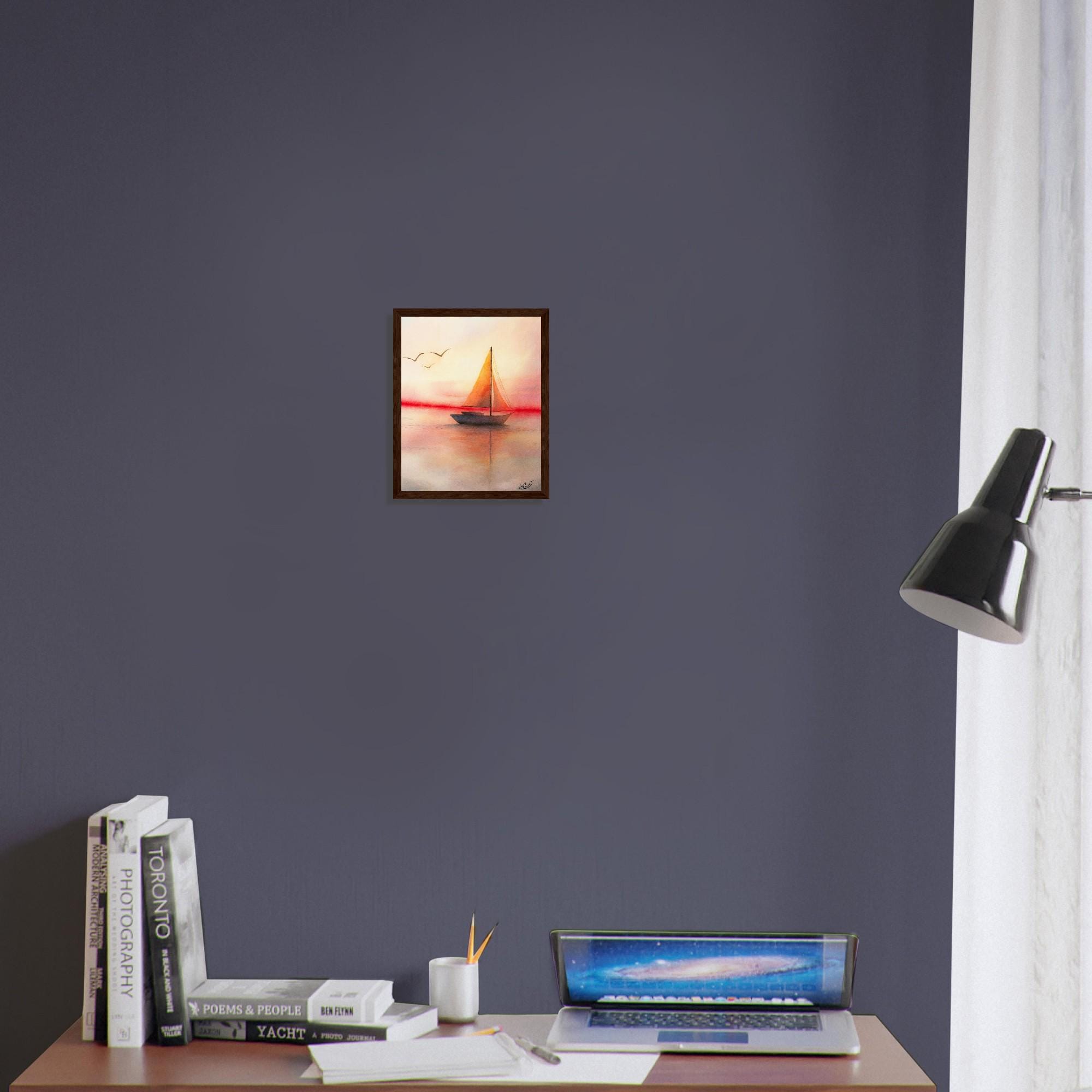 Sunrise Sail Boat Framed Print - Watercolor Art by LaCount Anderson for Beach & Lake Houses