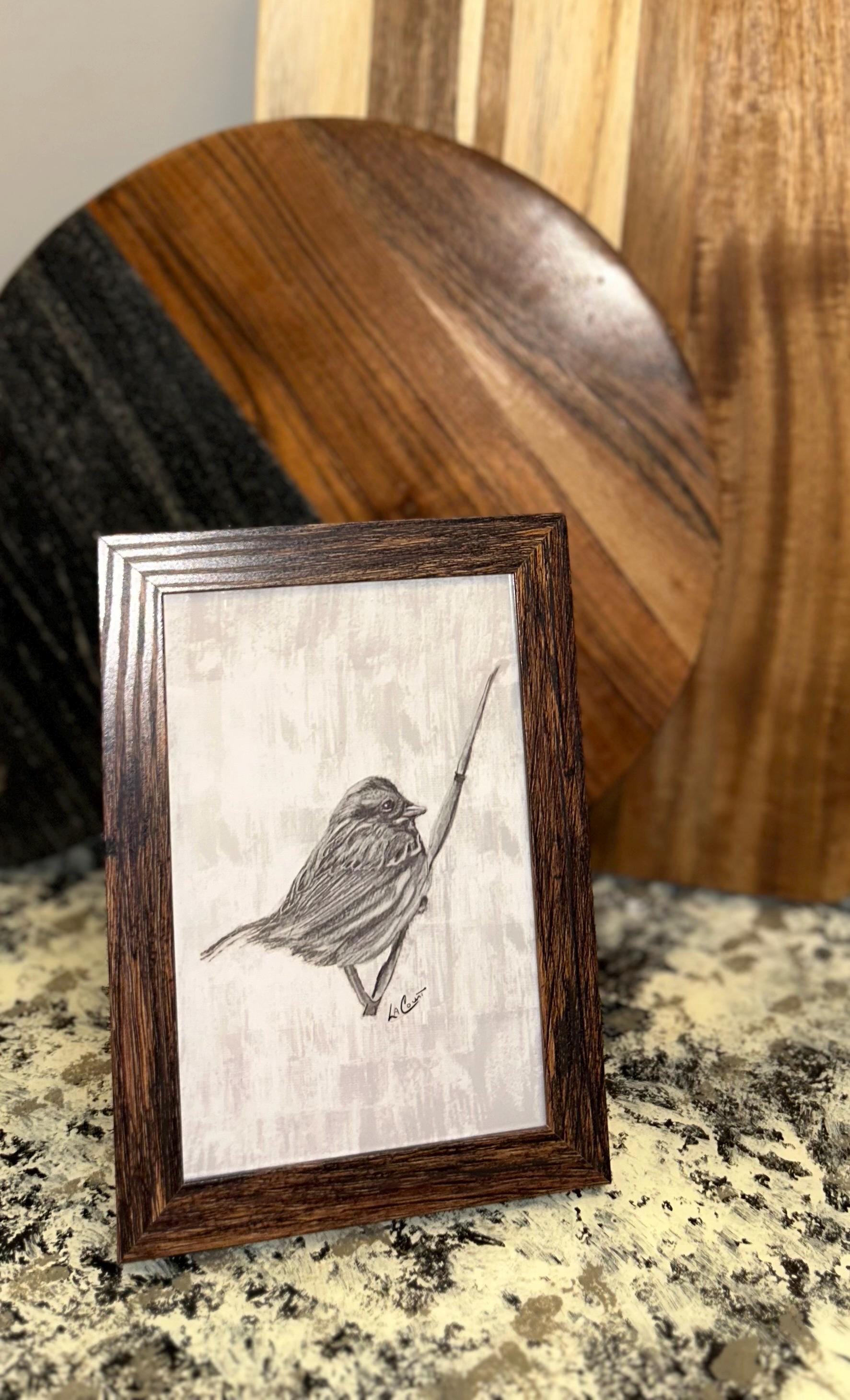 Framed Song Bird Art Print – 4x6 Natural Wood Frame, Cottagecore Wall Decor